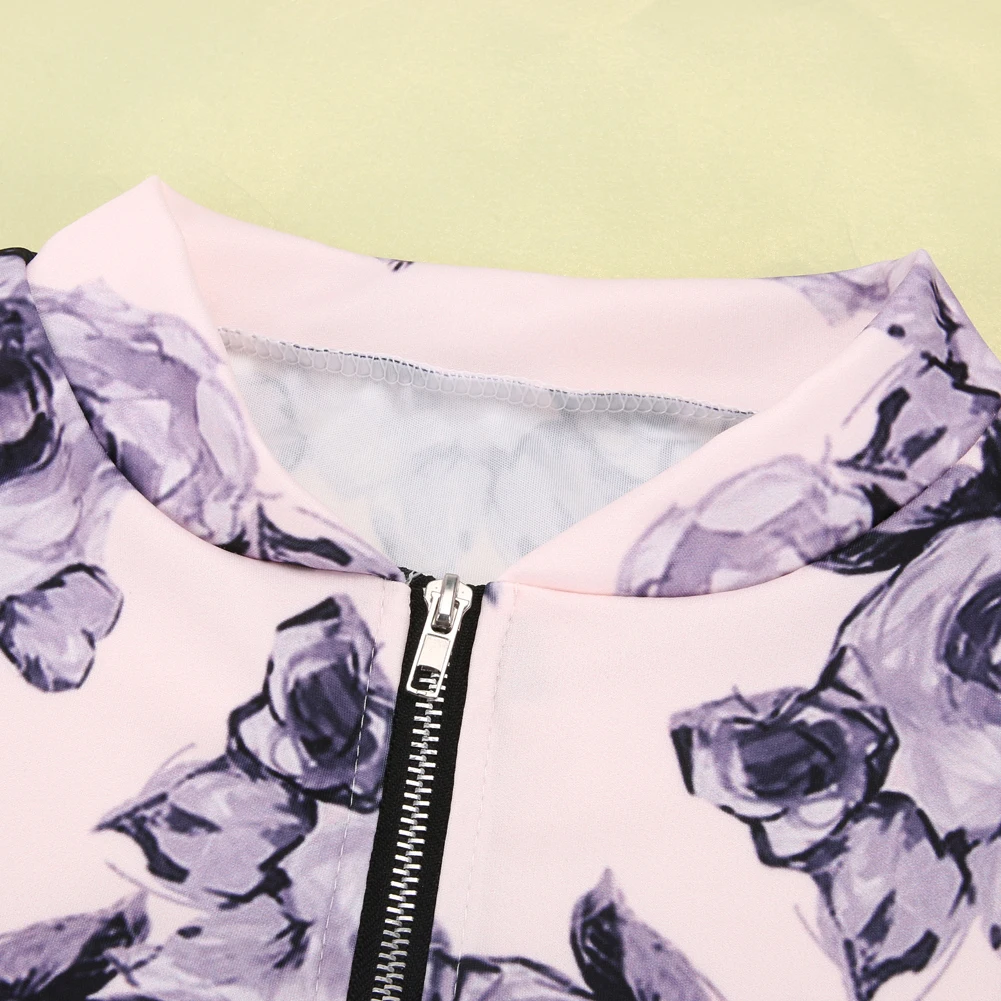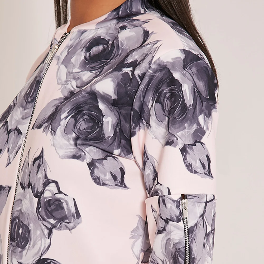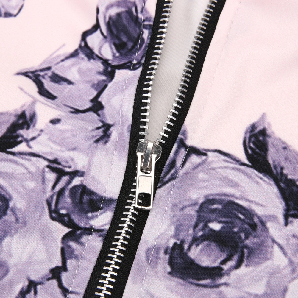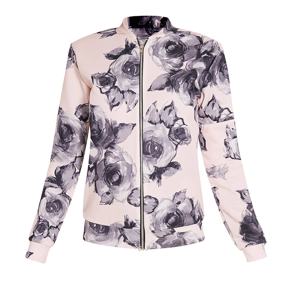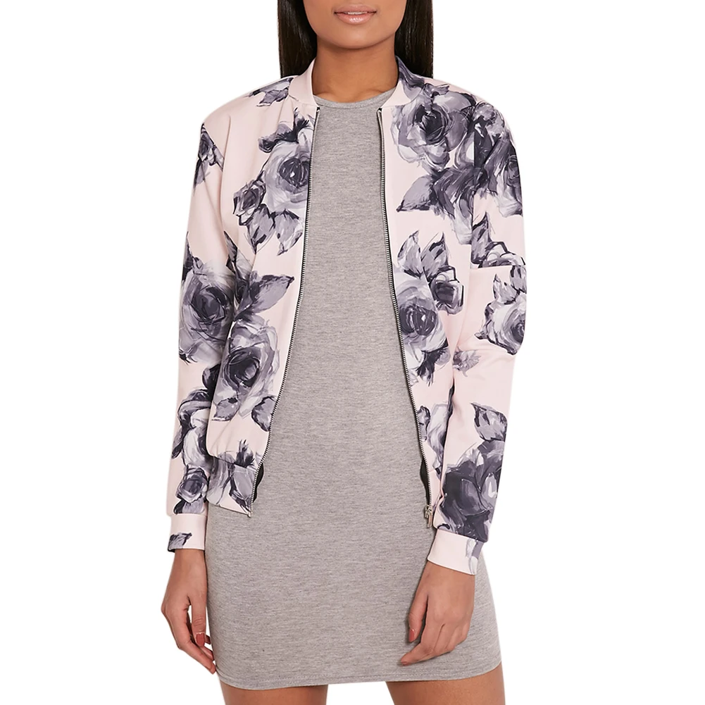 Autumn Spring Women Basic Floral Print Coats Long Sleeve Retro Bomber Jacket Zipper Outwear Casual Ladies Jacket Fashion Female