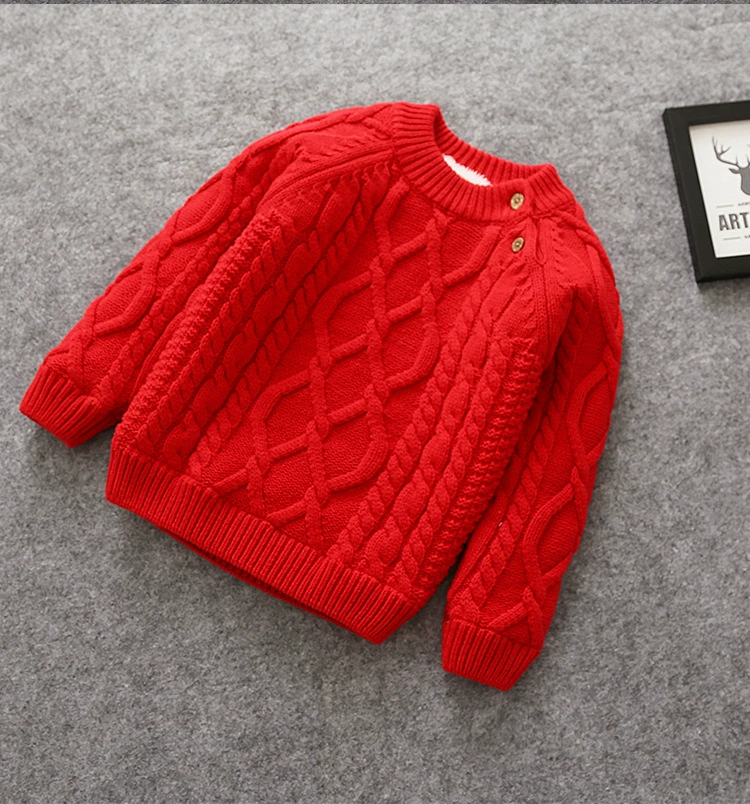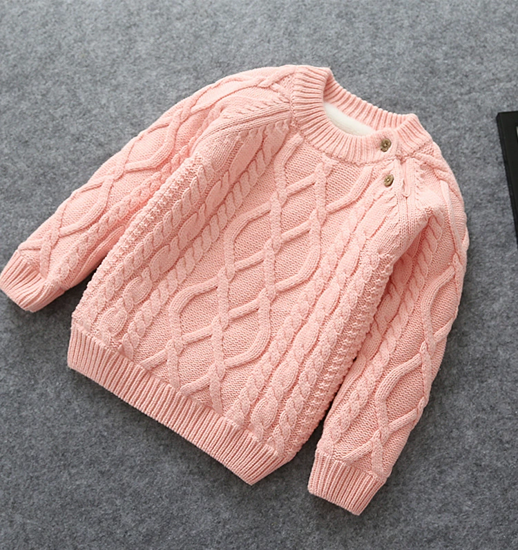 Autumn Winter baby boys girls sweater Children thick warm fleece jumper kids Solid Twist Knitted outerwear boys girl under shirt