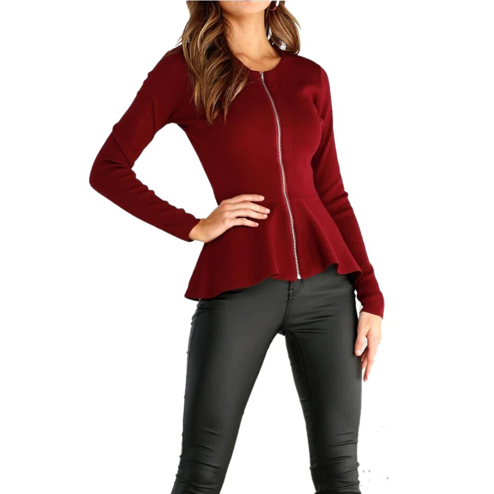 Autumn Winter Fashion Women Jacket Burgundy Green Blue Black With Zipper Casual Jacket Long Sleeves Feminino Coats Outwear