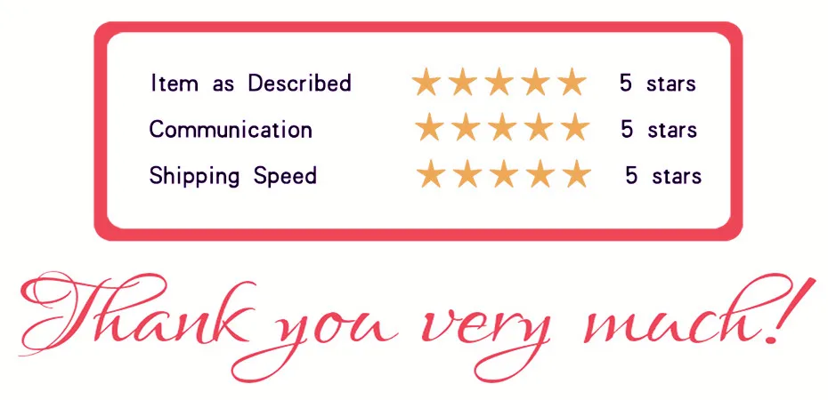 1.If you are satisfied with our products and services,please leave your postive feedback and 5 stars.
