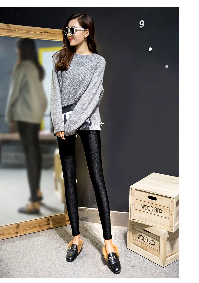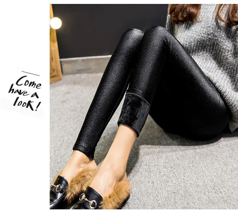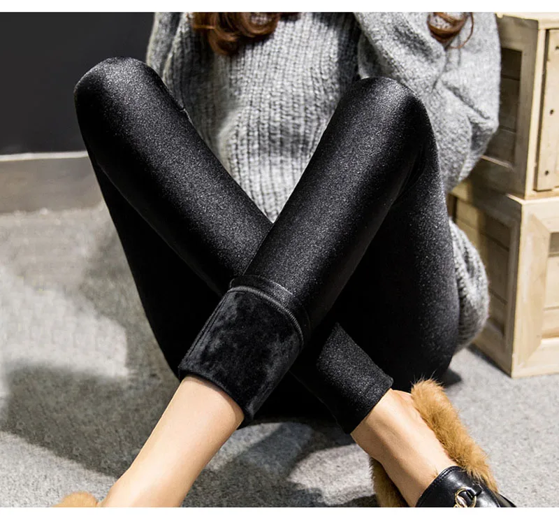 Autumn Winter Plus Velvet Thickening Wear Leggings Black Feet Trousers Warm Large Size Shiny Pants Women Workout Leggins