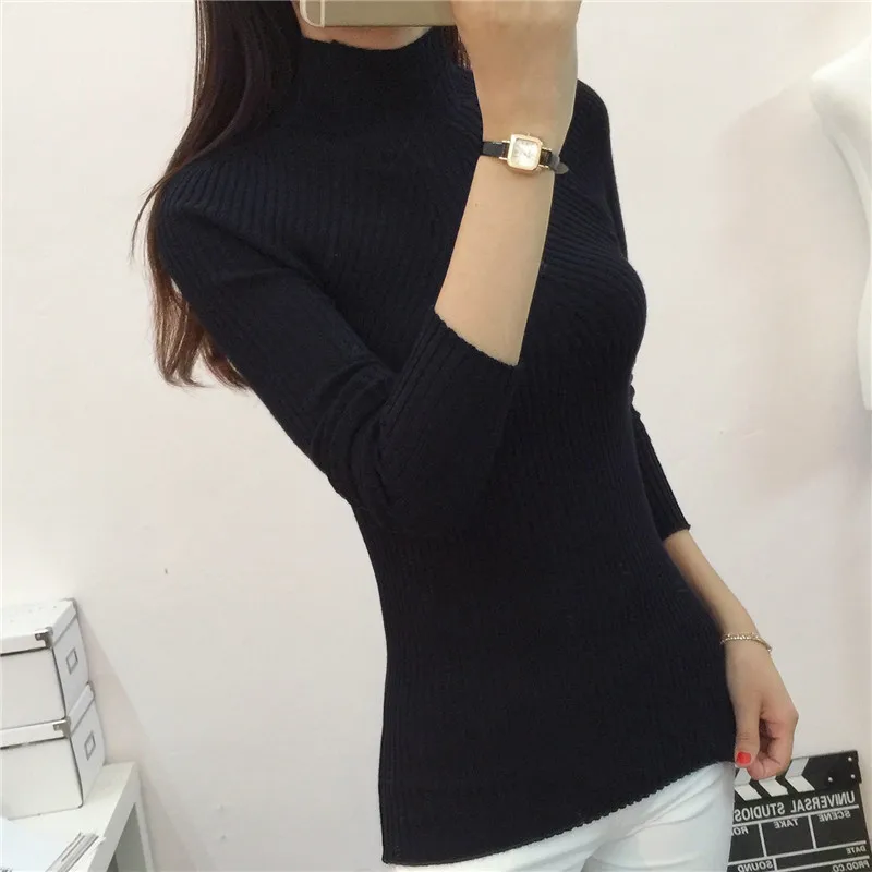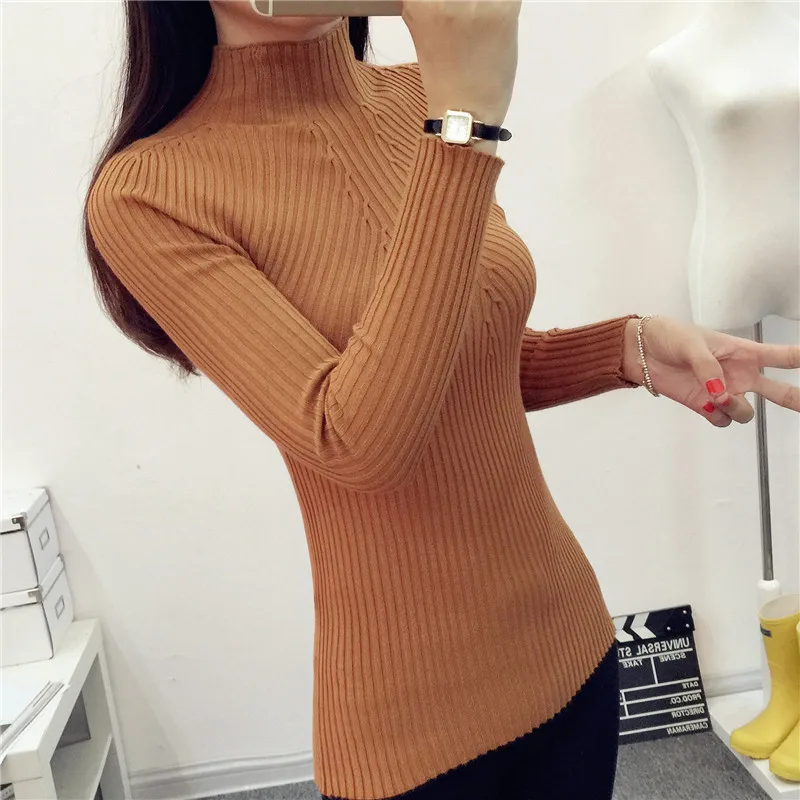 Autumn Winter Women Pullovers Sweater Knitted Elasticity Casual Jumper Fashion Slim Turtleneck Warm High Elastic Female Sweaters