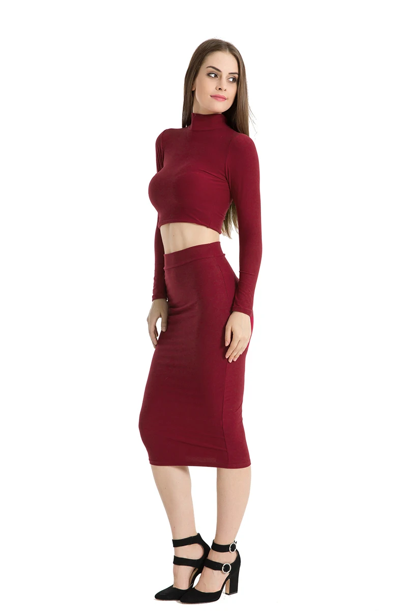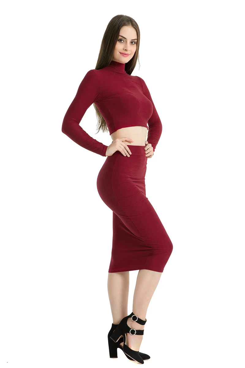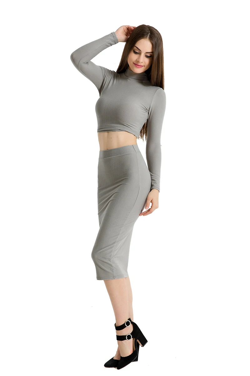 Autumn Women Two Piece Bodycon Dress 2 Piece Sets Outfits Cotton Long Sleeve Sexy Party Night Club Office Lady Dresses RV9093