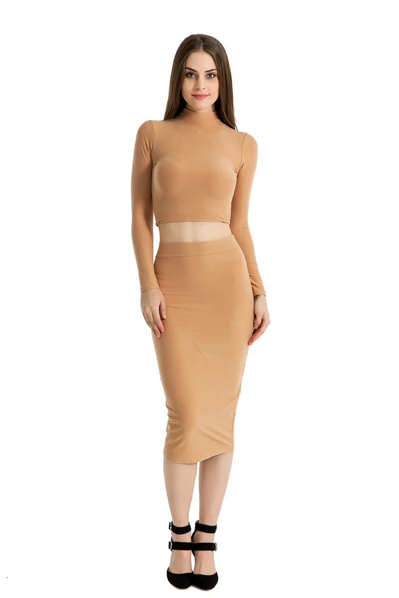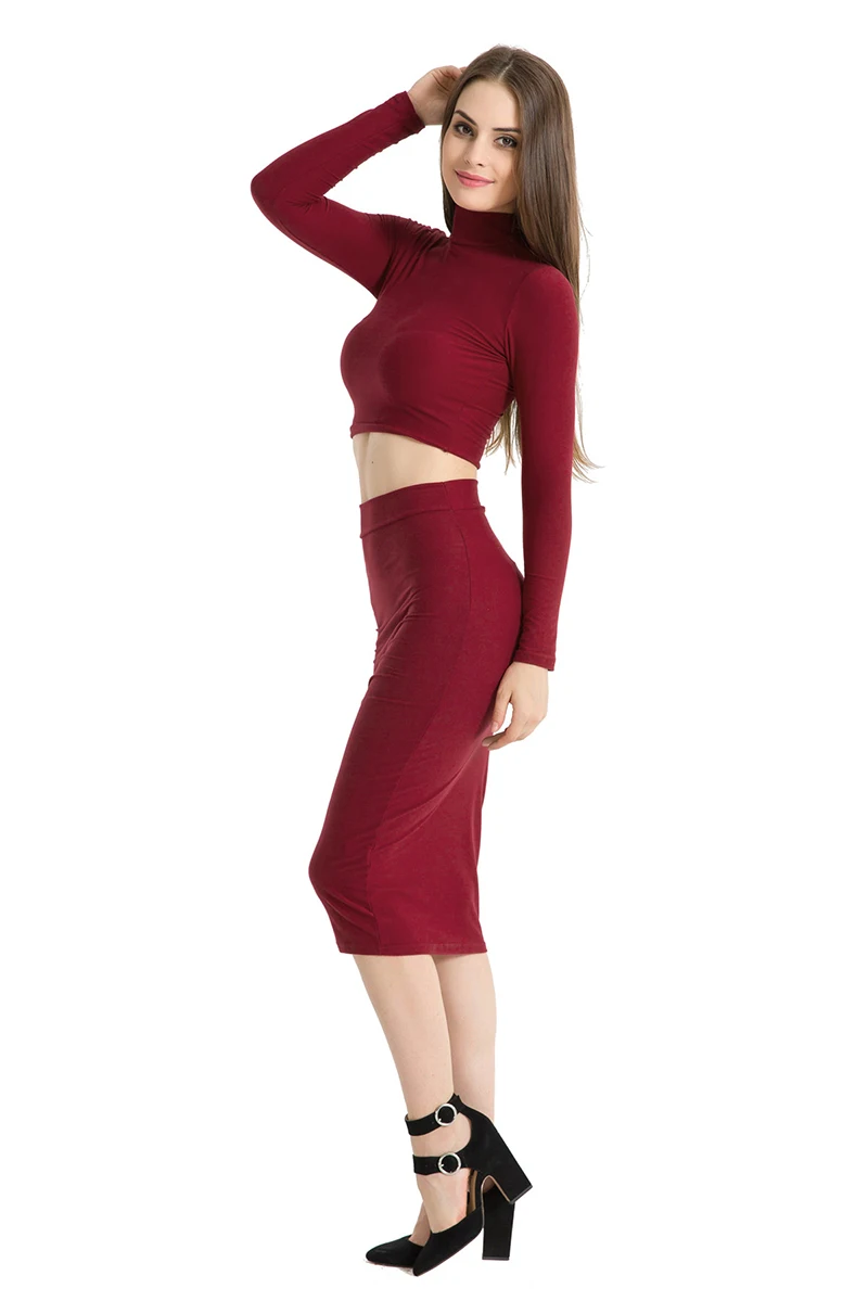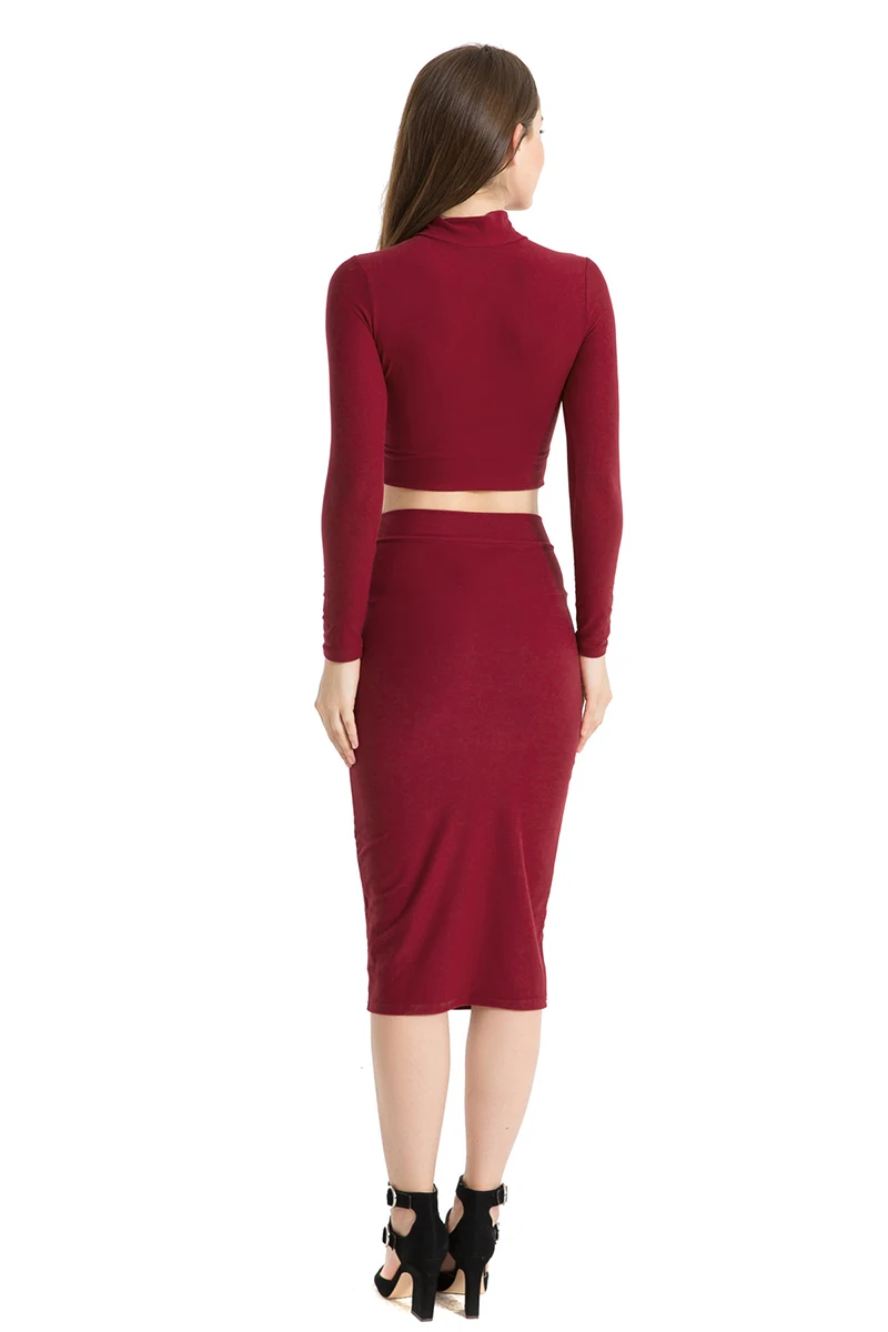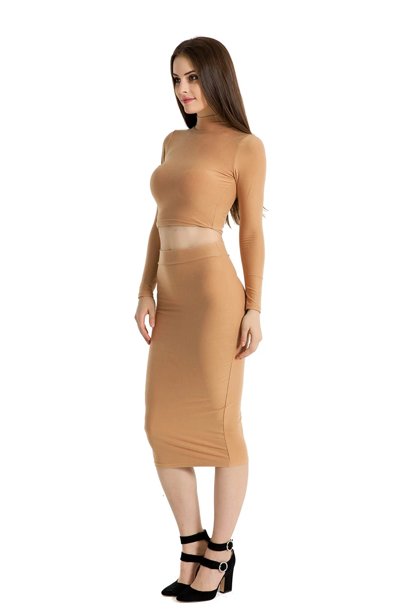 Autumn Women Two Piece Bodycon Dress 2 Piece Sets Outfits Cotton Long Sleeve Sexy Party Night Club Office Lady Dresses RV9093