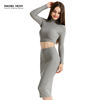 Autumn Women Two Piece Bodycon Dress 2 Piece Sets Outfits Cotton Long Sleeve Sexy Party Night Club Office Lady Dresses RV9093
