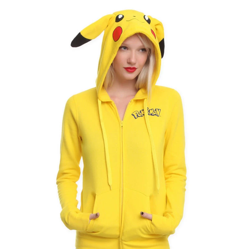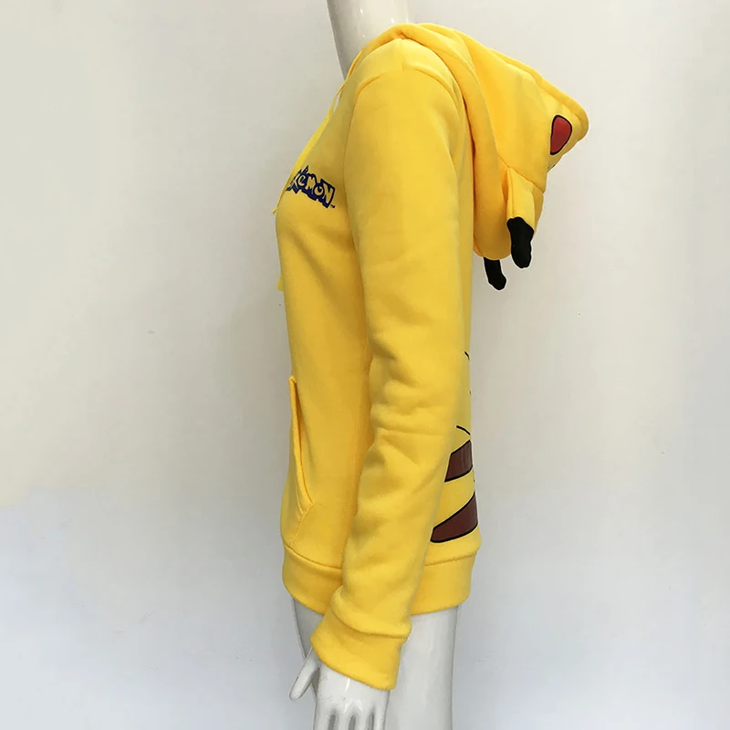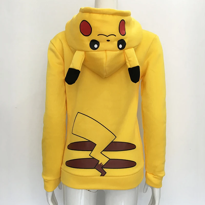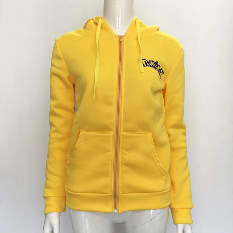 Autumn Women Zipper Cartoon Hoodies Sweatshirts Long Sleeve Pikachu Hooded Harajuku Casual Yellow Loose Tracksuit Sportwear