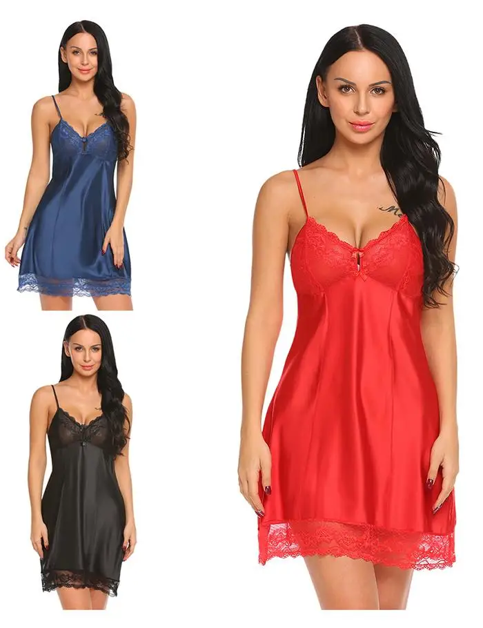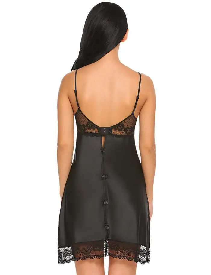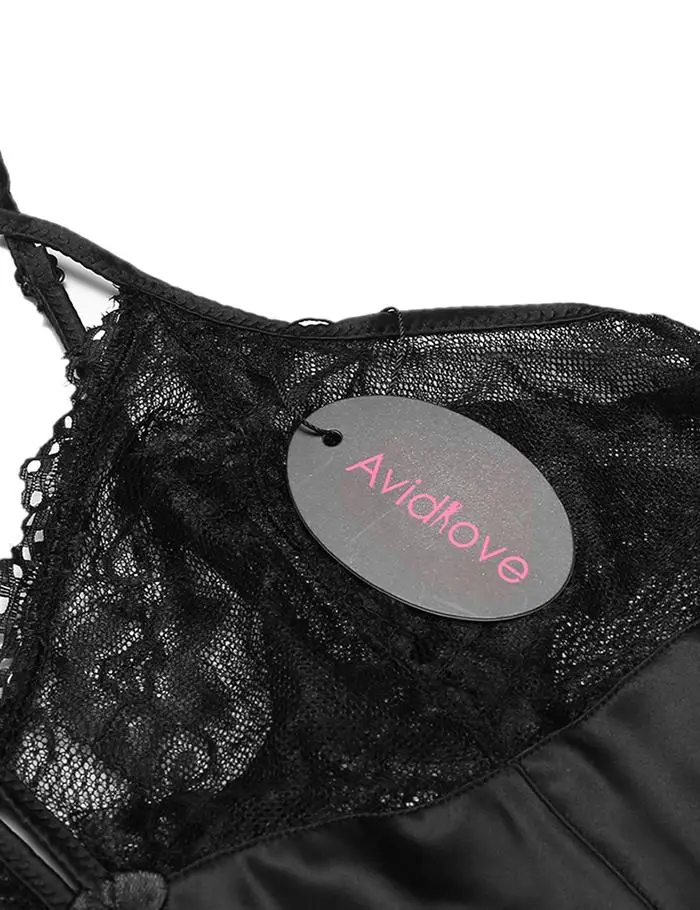 Avidlove Sexy Sleepwear Women Backless Satin Chemise Slip Nightwear Lace Nightgown Female Home Night Gown Baby Doll Dress