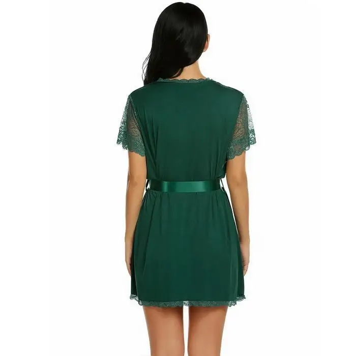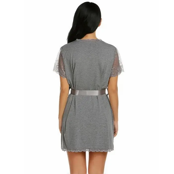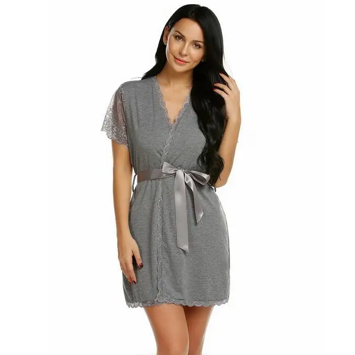 Avidlove Women Loose Sexy Patchwork Floral Short Sleeve Robe femme Bathrobe Dressing Gown Lingerie