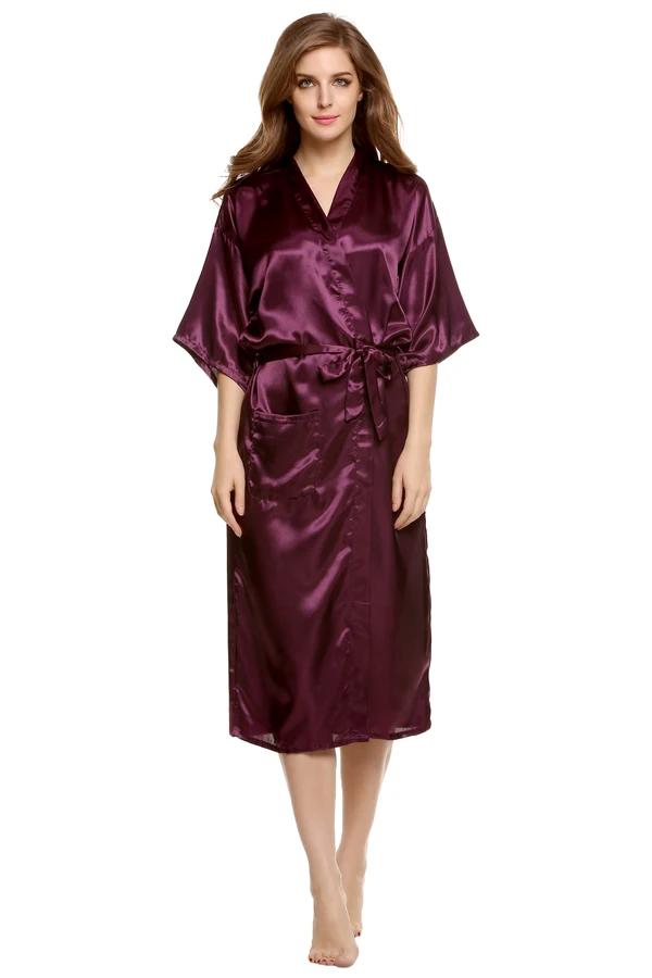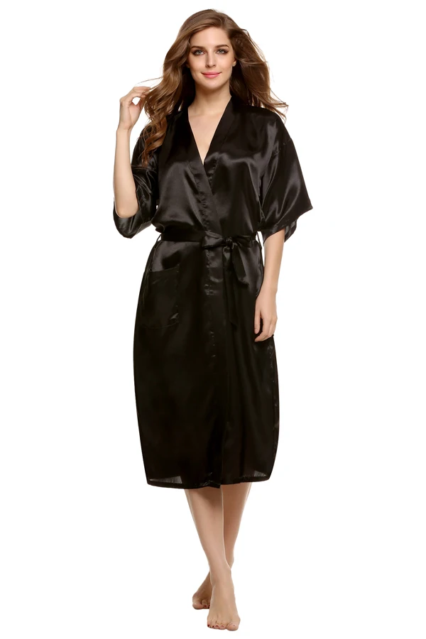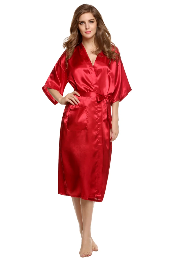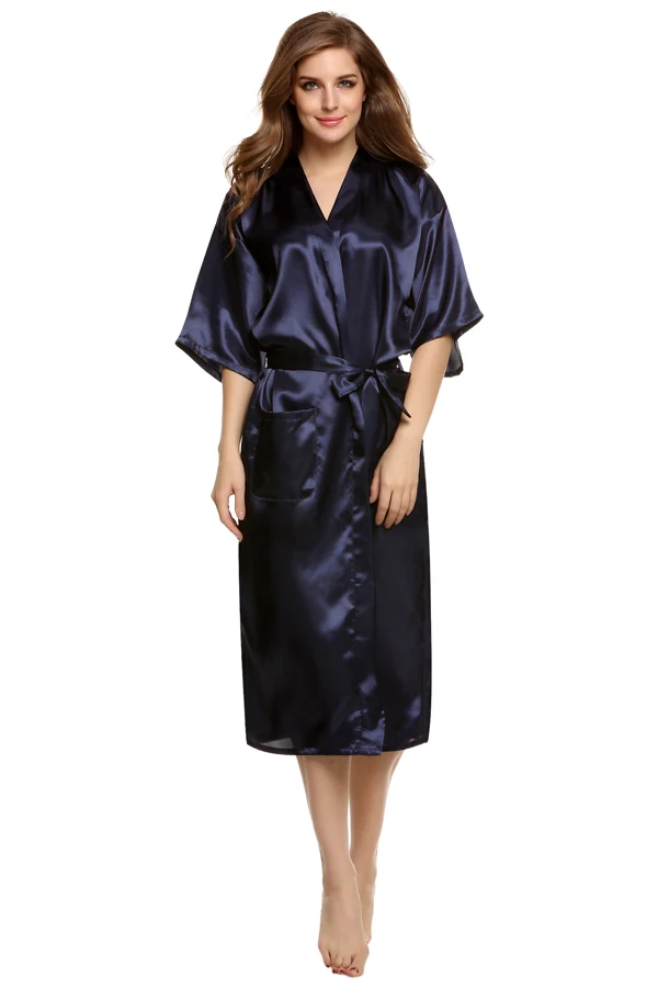 Avildlove 2016 Sexy Lady Long Robe Kimono Sexy Solid Nightwear Women Lingerie Pajamas Gown Bath Robe with Belt 7 Colors M-XXL U2