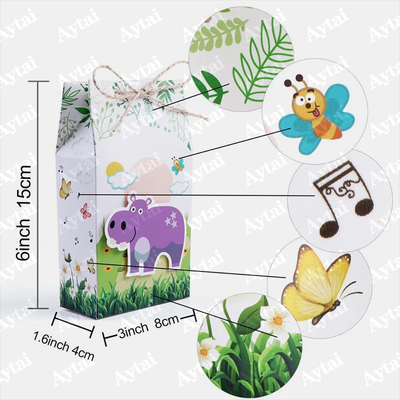 Aytai 6pcs 3D Cartoon Animals Paper Gift Bags for Kids Birthday Party Baby Shower Decoration Christening Party Favors Supplies