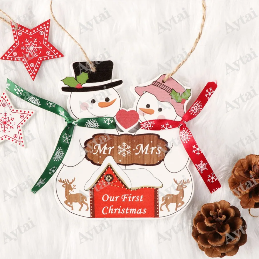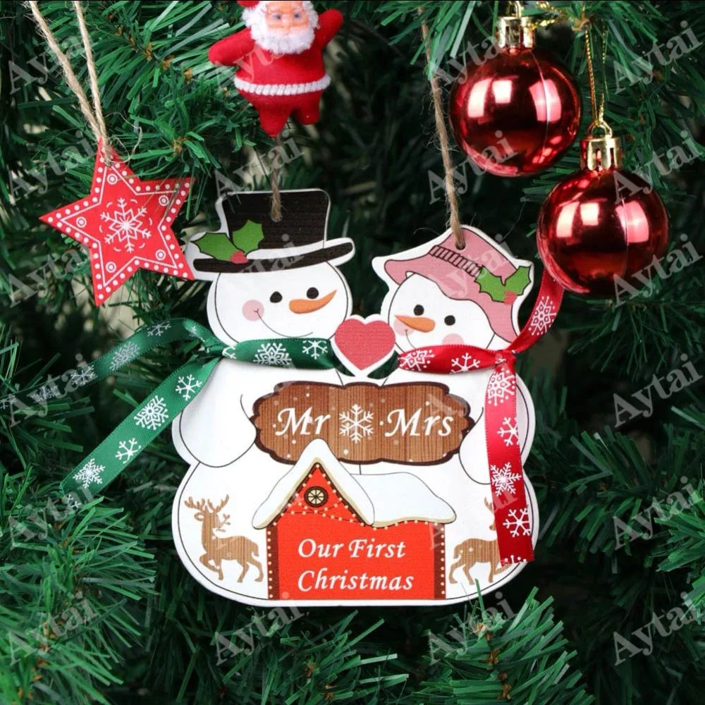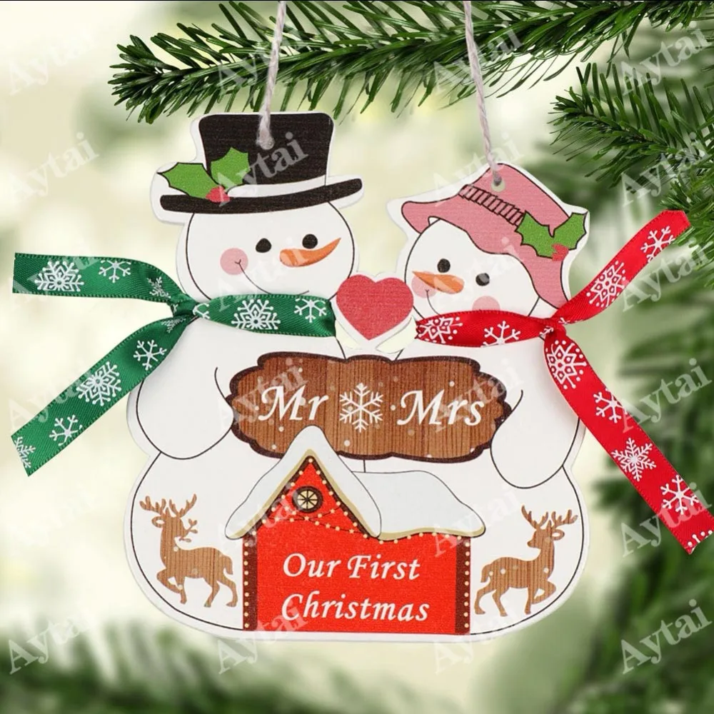 Aytai Christmas Tree Decoration Wooden Merry Christmas DIY Ornament Frst Christmas as Mr and Mrs Ornament 2019 New Year Gift
