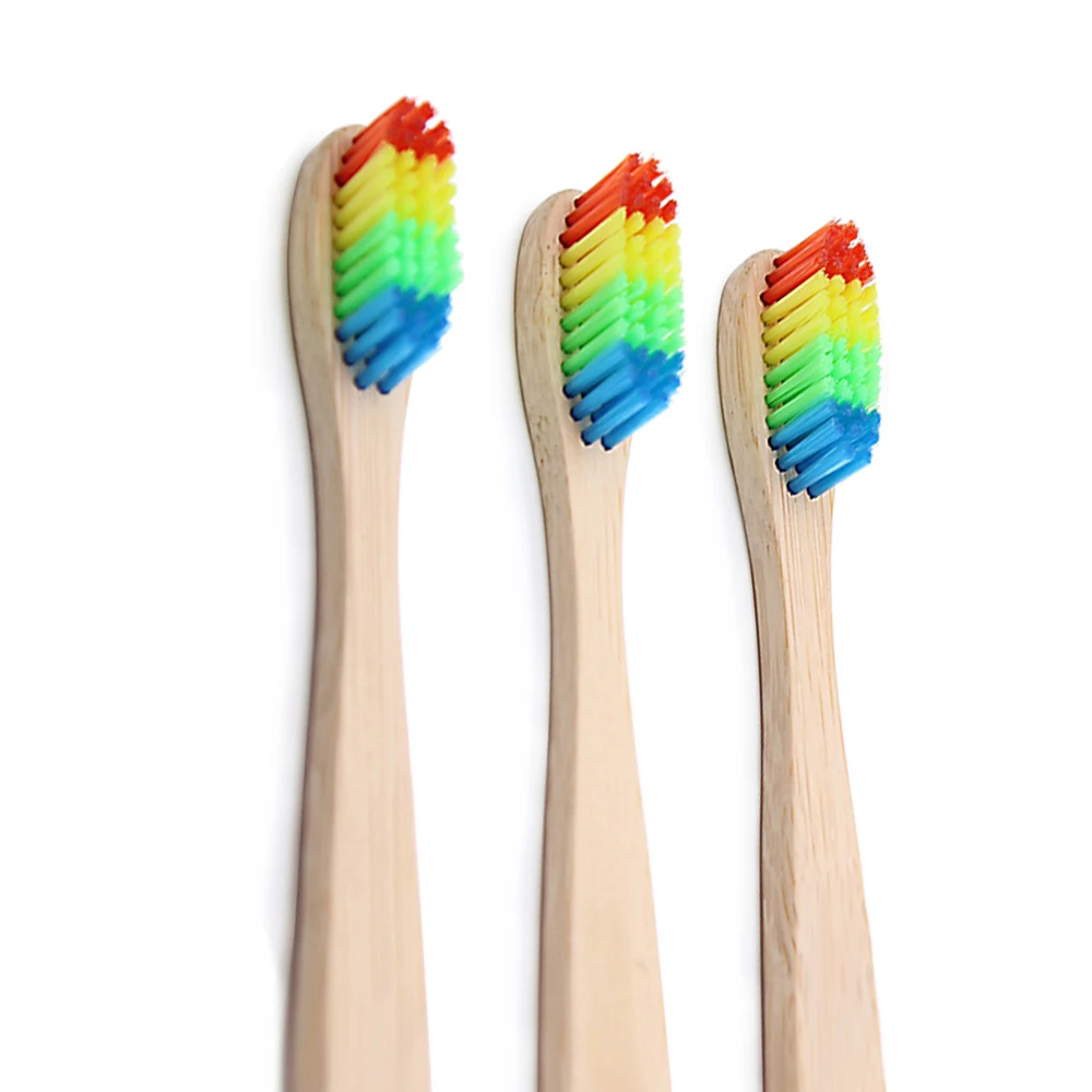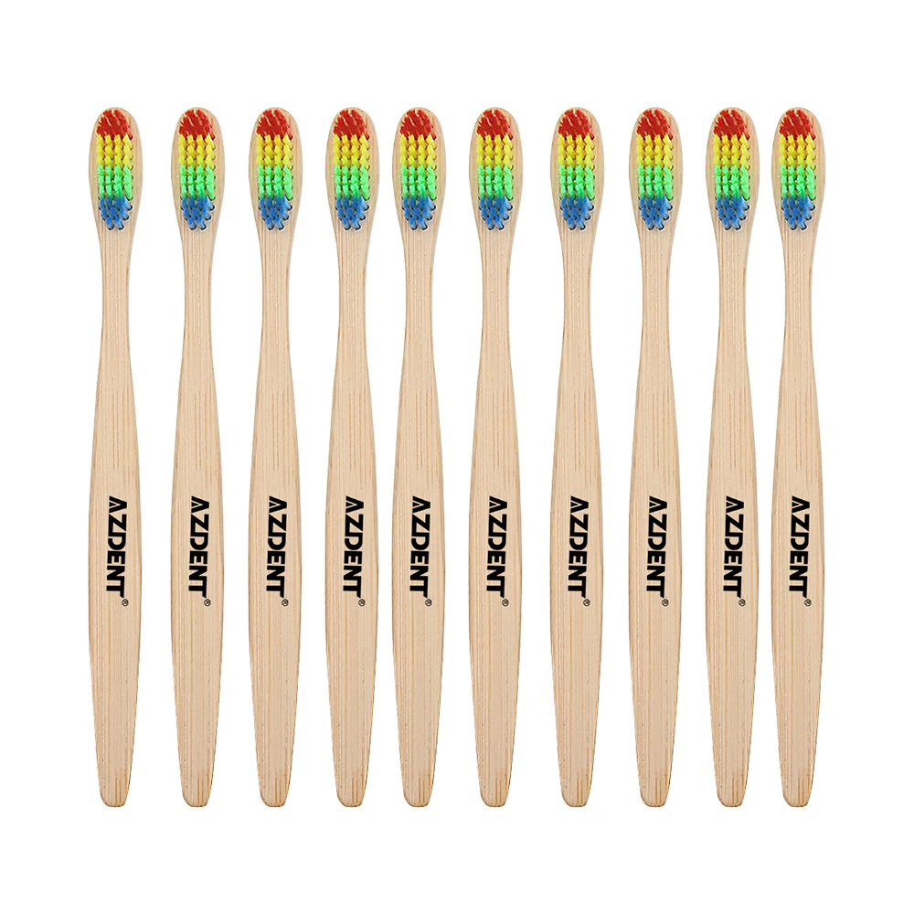 AZDENT 10Pcs/Lot Colorful Toothbrush Double Ultra Soft Wooden Handle Environment Bamboo Charcoal Tooth Brushes Cleaner Whitening