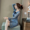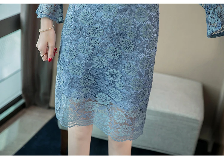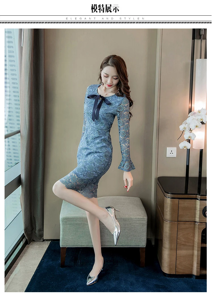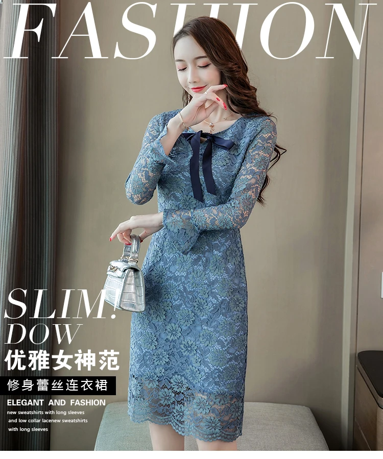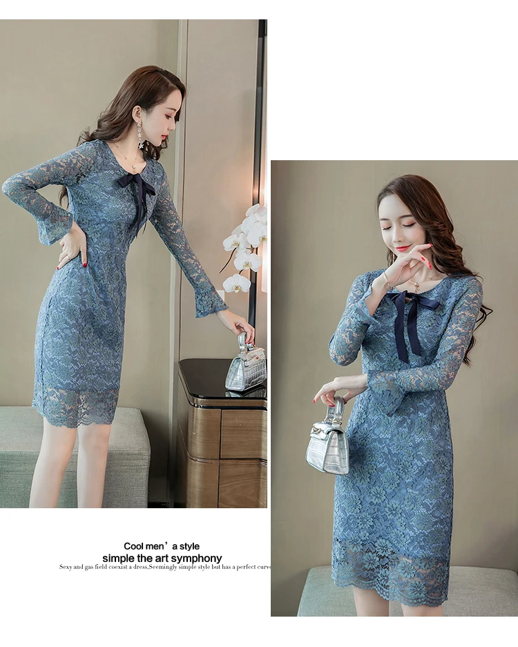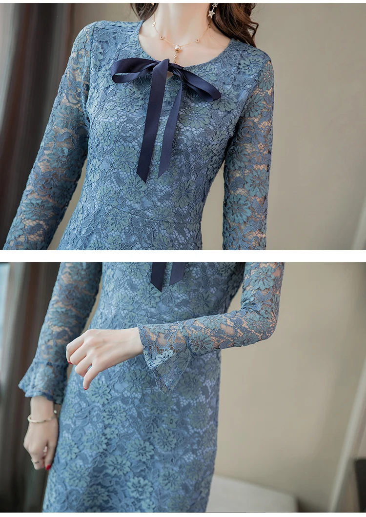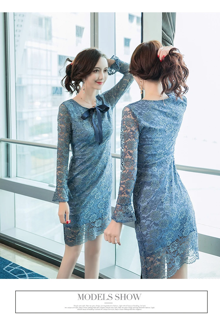 Azterumi Autumn Winter New 2018 Women Sweet Lace Dress Female Elegant Bow Mini Party Dresses Ladies Blue A-line Dress Vestidos