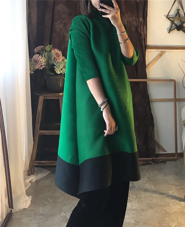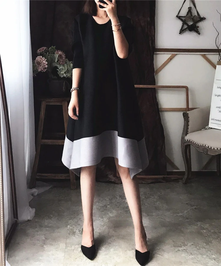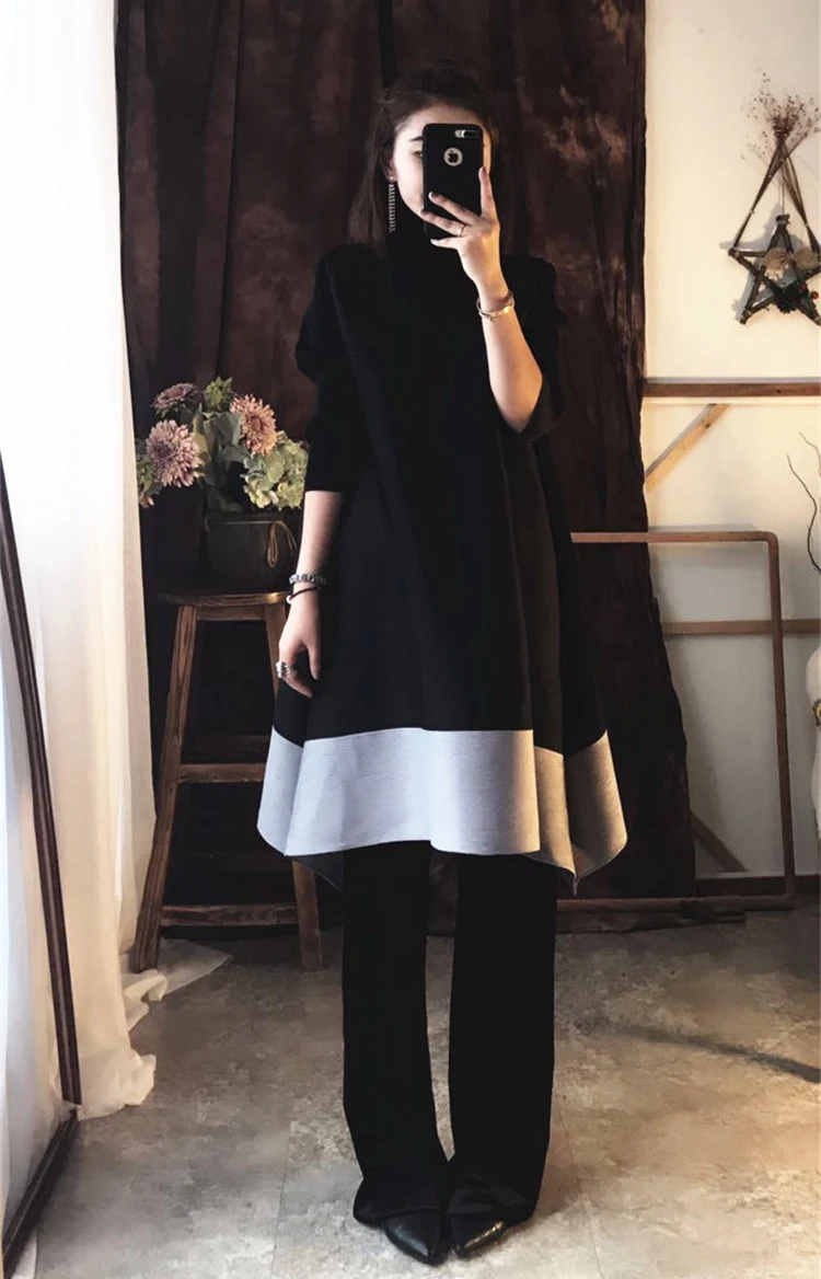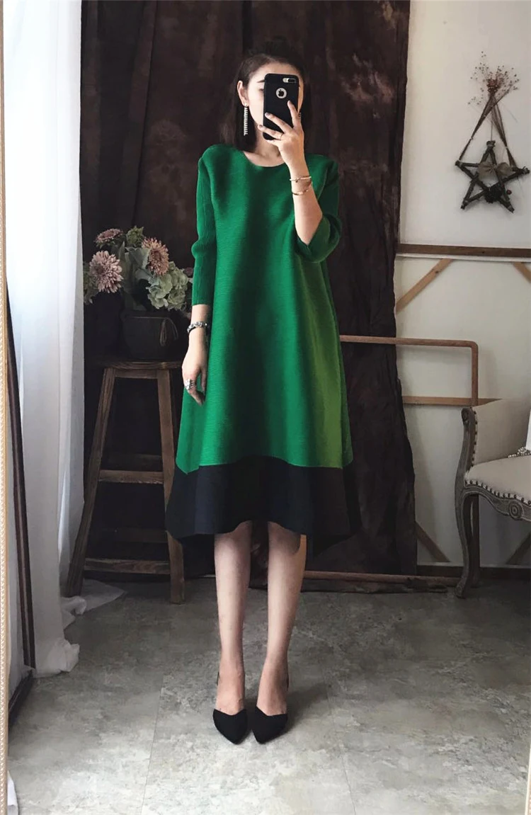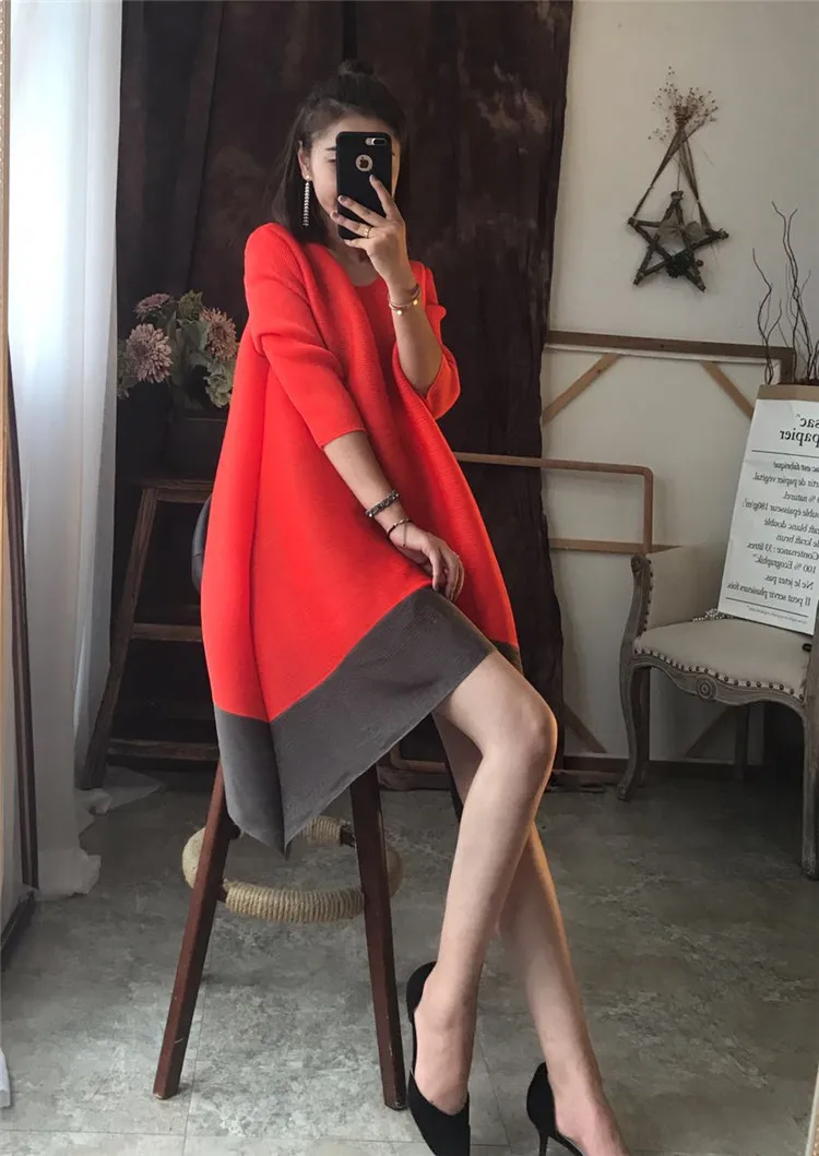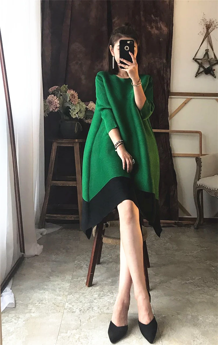 Azterumi Issey Miyake Autumn New 2018 Women Fashion A-line Dress Female Elegant Turtleneck Dresses Ladies Black Orange Vestidos