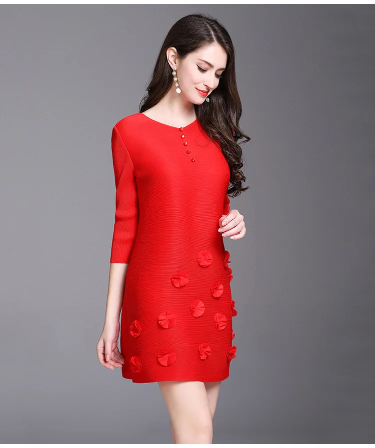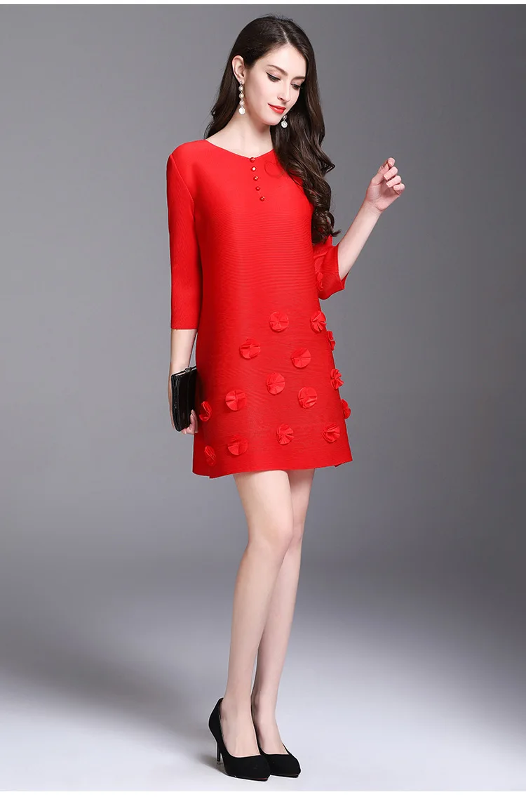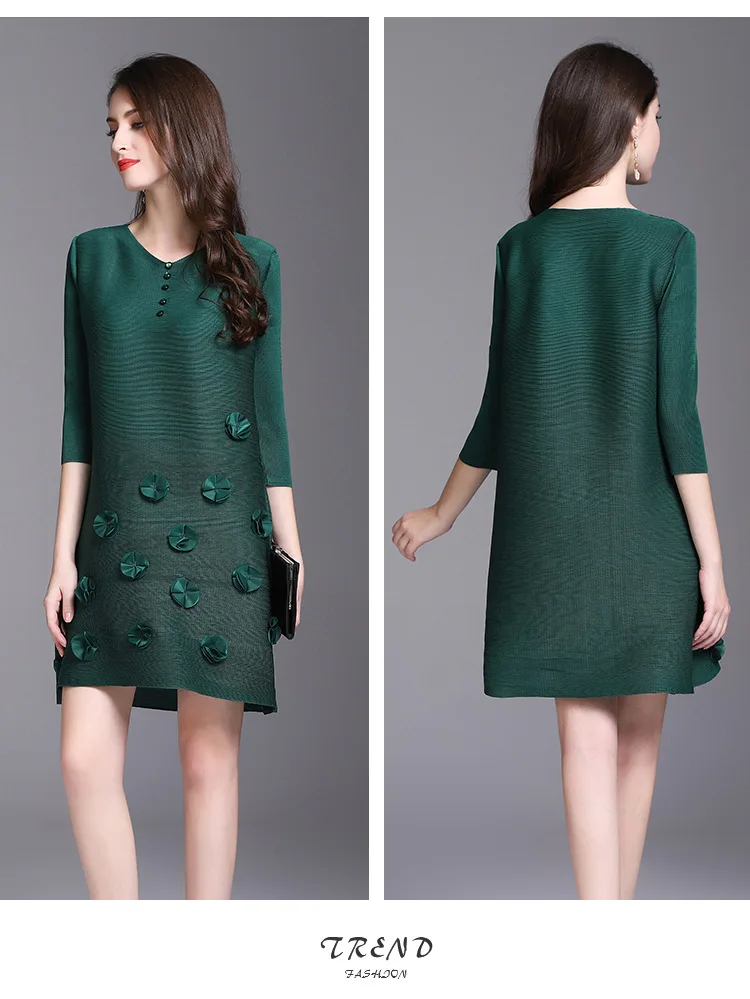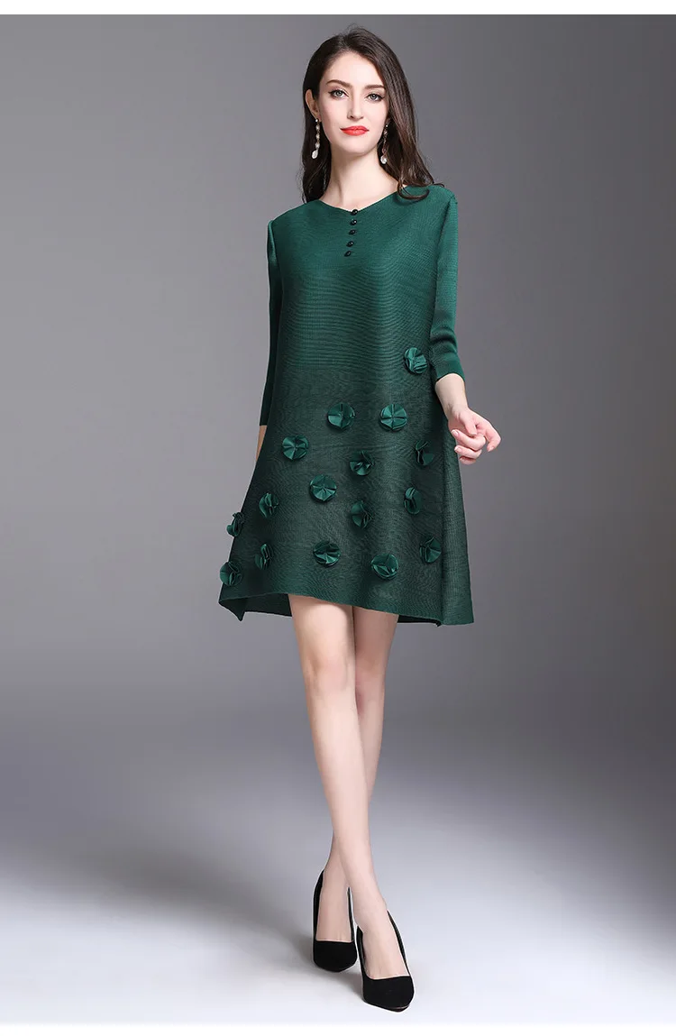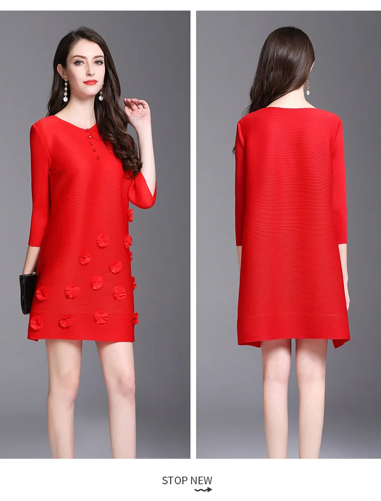 Azterumi Issey Miyake Summer Autumn New Women Fashion Elegant Mini Dress Female Casual Loose Black Red Green Dresses Vestido