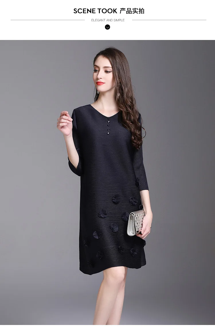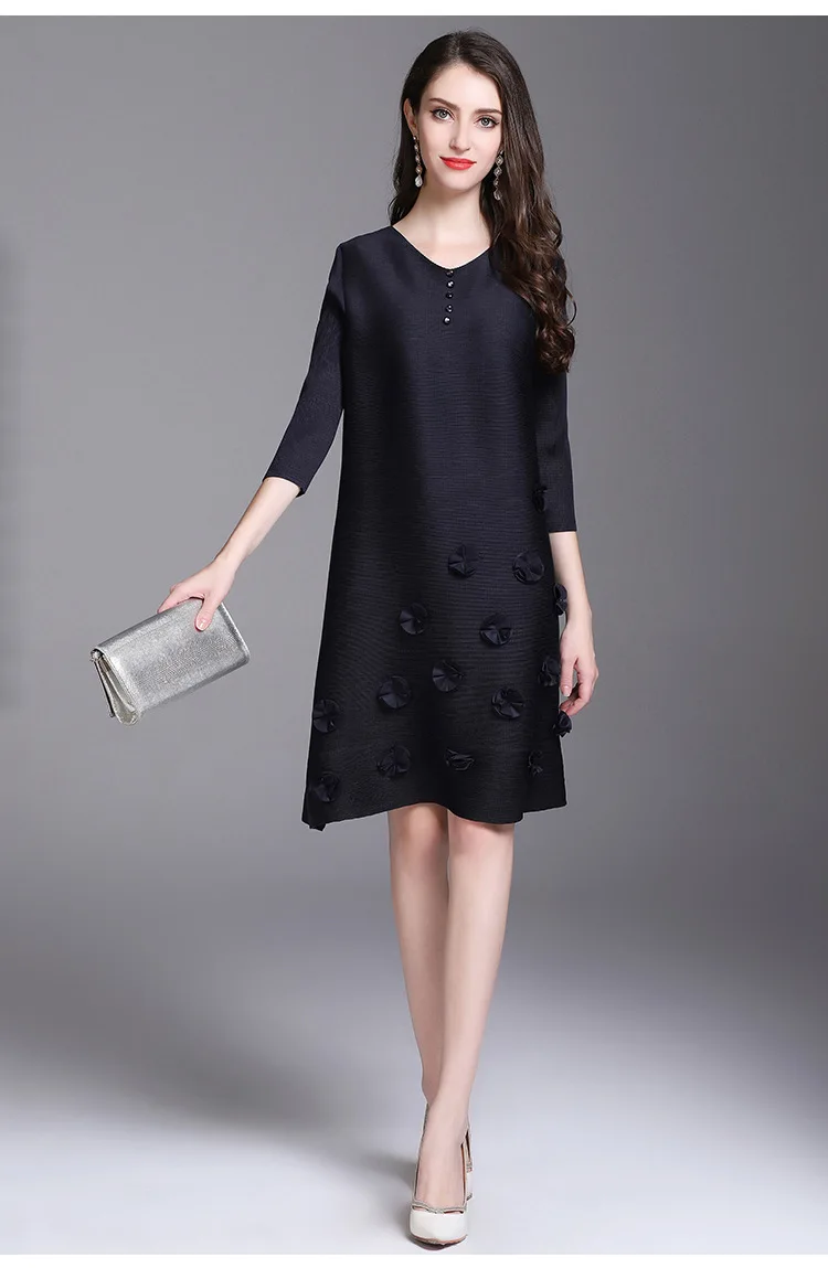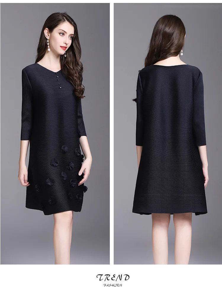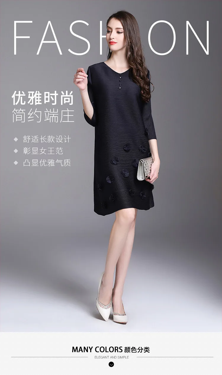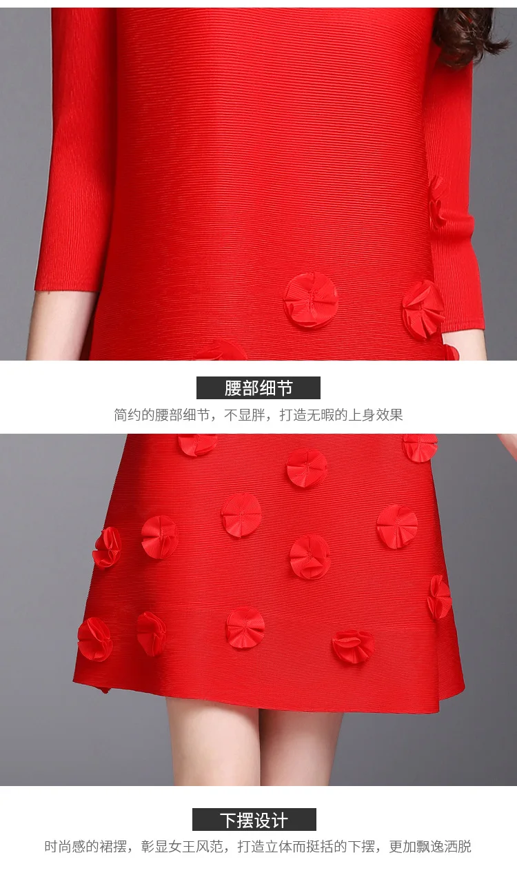 Azterumi Issey Miyake Summer Autumn New Women Fashion Elegant Mini Dress Female Casual Loose Black Red Green Dresses Vestido