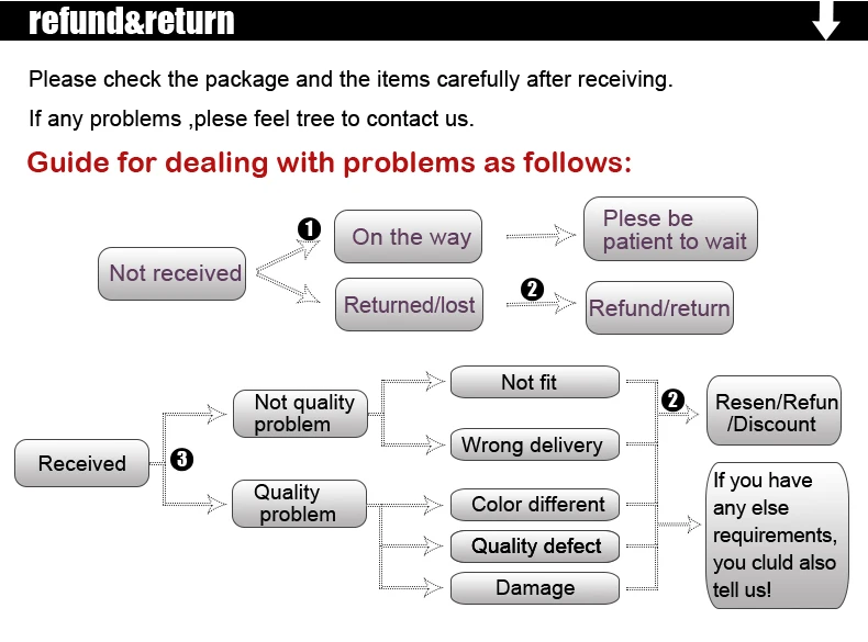 • If you received the wrong item you can request a refund or a reshipment.