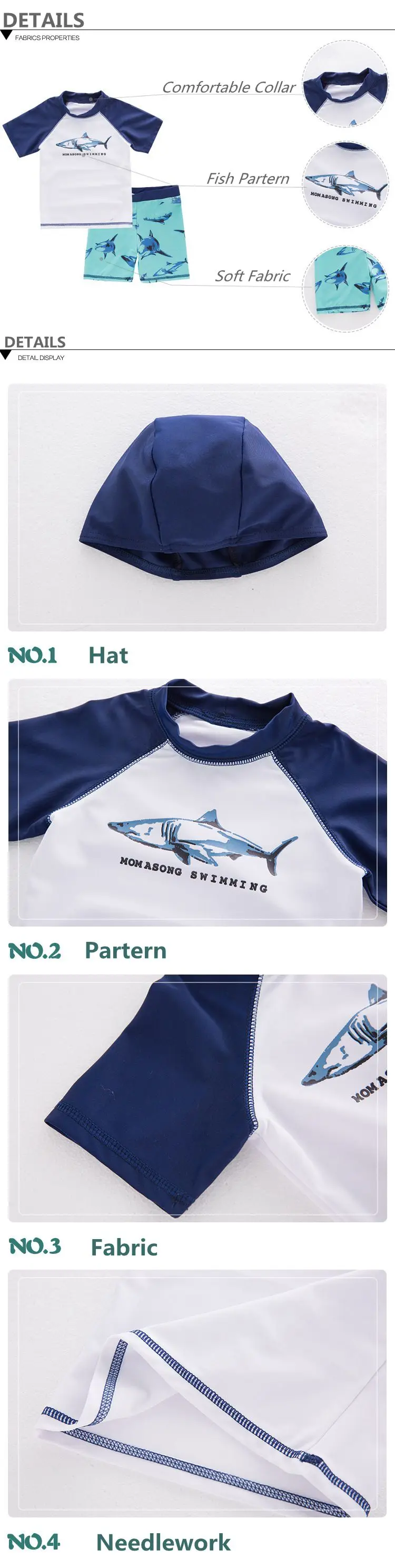 Baby Boys Swimwear Infantil Swimwear Kids Swimsuits Diving Surfing Newborn Swimsuits 3pcs Swimming hat+t shirt+pants suits