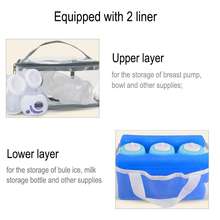 2. Double-layer double liner design: upper layer: enlarged upper layer design for storage of breast pump, bowl and other supplies; lower layer for milk storage and preservation. Two separated layers design ensures its sanitation.