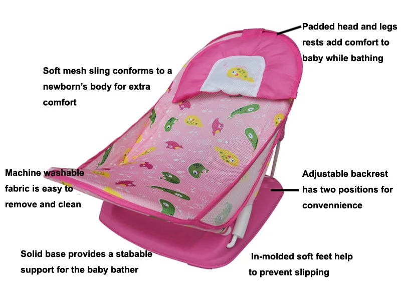 Baby Care Newborn Baby Bather Deluxe Bath Rack Shower Chair Infant folding Sip-resistant Bath Chair with Soft Mesh 0 to 7 Months
