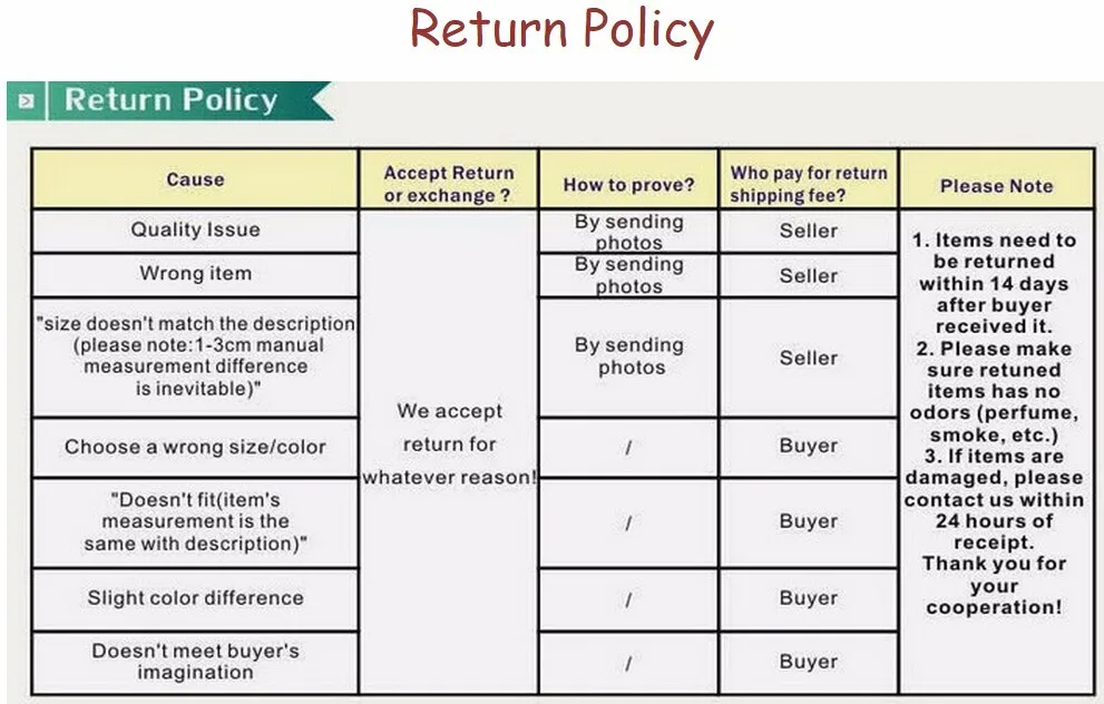 If for any reason you would like to exchange your product, perhaps for a different size in clothing. You must contact us first and we will guide you through the steps.