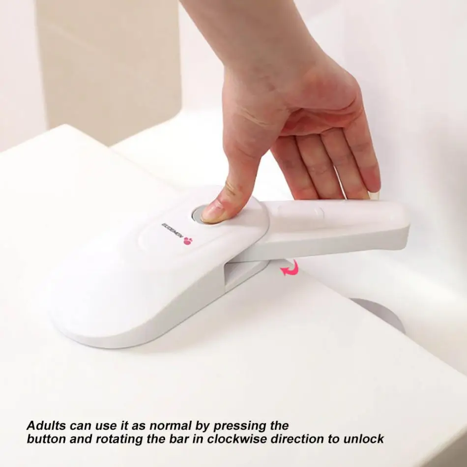 - It is designed to stop your child from opening up the toilet seat and adults can use it as normal by pressing the button and taking the rotating bar in clockwise direction at the same time.