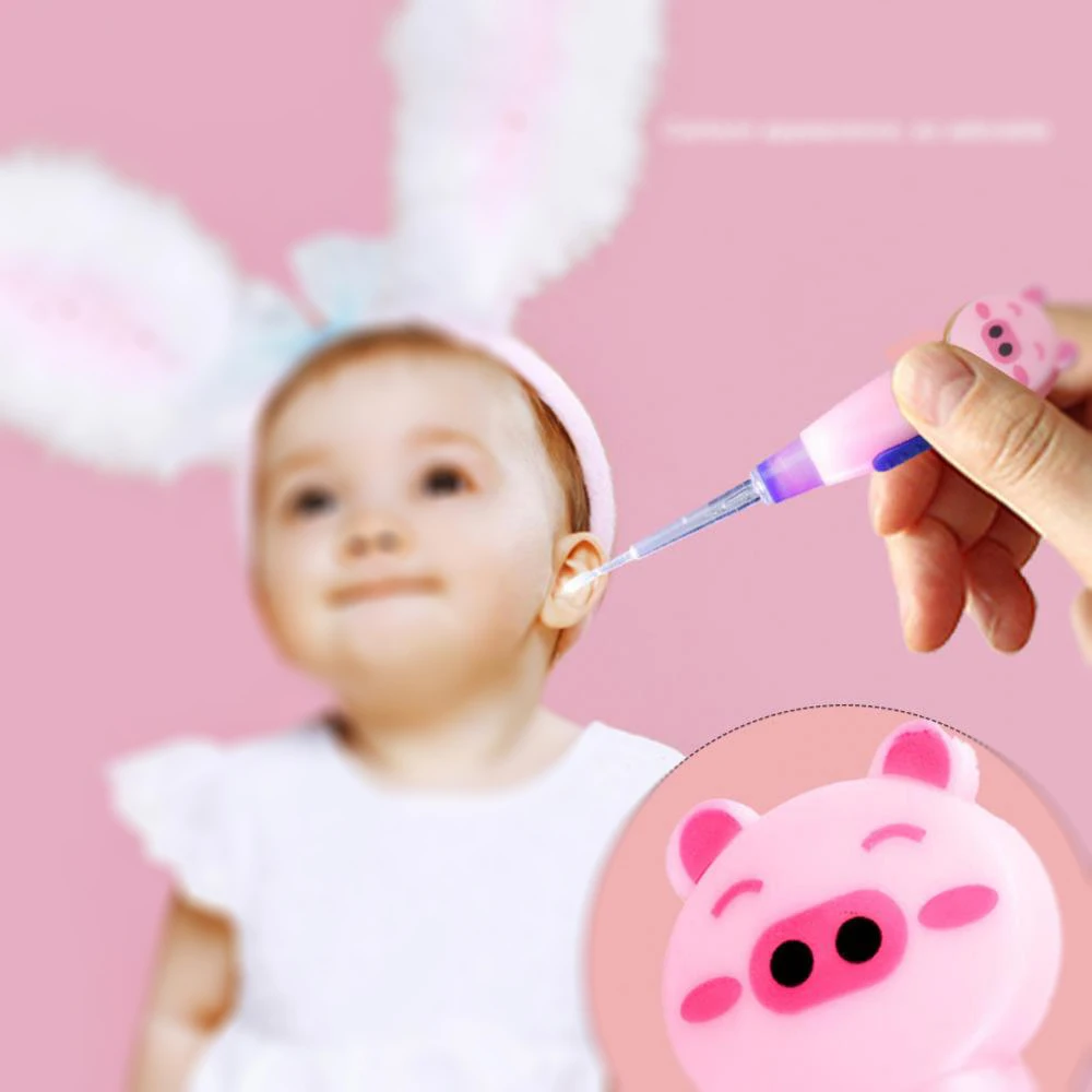 This is a baby care product, helps to clean ear easily and safely. Switch on the button and the spoon part will light on, which is helpful to see the inside of ear clearer.