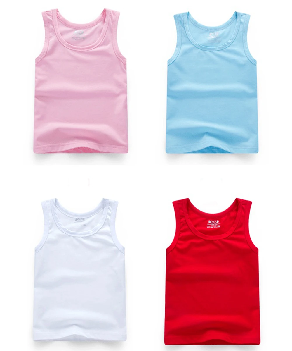 Baby Cotton Tees Sleeveless Tops T Shirt Summer Clothes Girls Boys Vest Candy Color T-Shirts Beach Wear A101 Children’s Clothing
