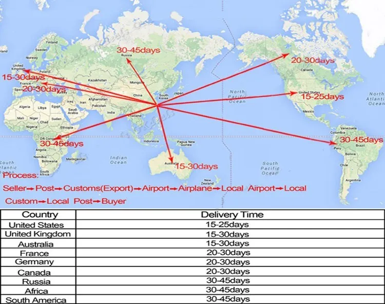 Packages from our warehouse in China will be shipped by ePacket or EMS depending on the weight and size of the product. Packages shipped from our US warehouse are shipped through USPS.