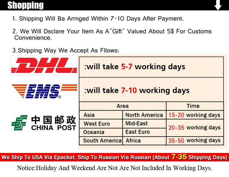2.Real color may slightly different from pictures due to computer screen’s resolution, brightness, contrast etc. Hope understanding. Have a nice shopping day!