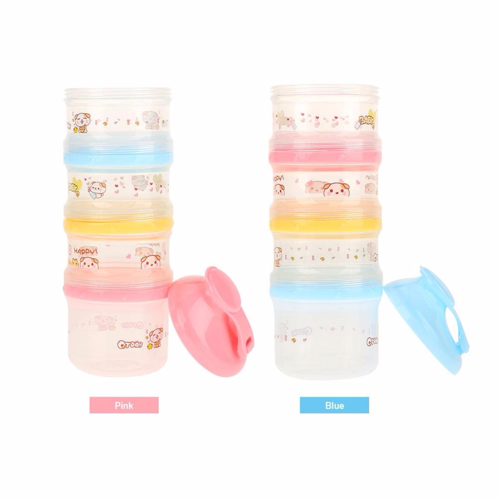 Baby Formula Milk Storage Box 4 Layers Portable Cartoon Pattern Snack Dispenser Baby Feeding Food Storage Container Big Capacity
