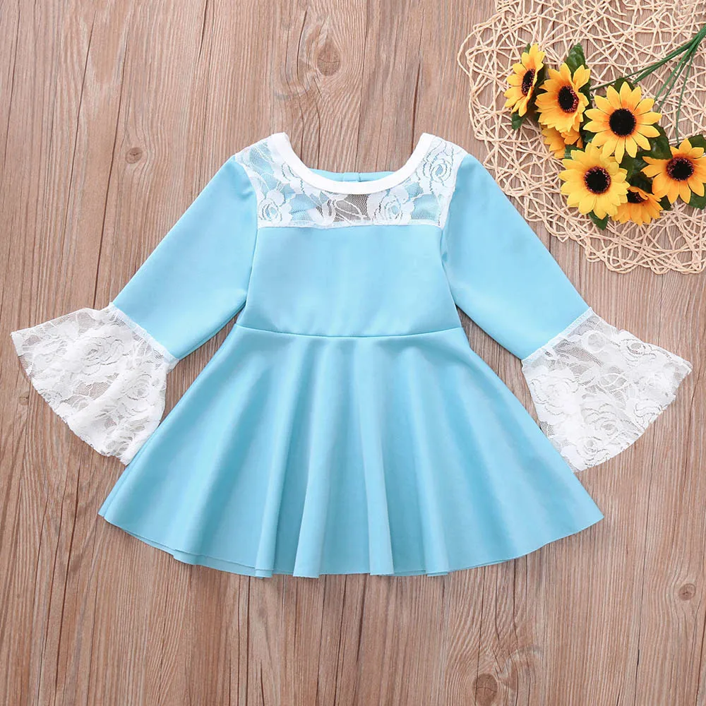 Baby Girls Dress Autumn Long Sleeve Lace Dresses Toddler Infant Girl Solid Bow Princess Clothes Dress Party Girl Vestidos 1080