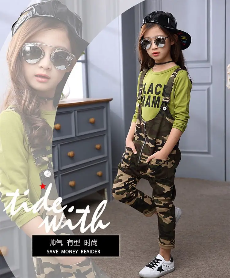Baby girls jumpsuit rompers 2018 new autumn cotton camouflage pants children casual romper suspenders trousers full long pants