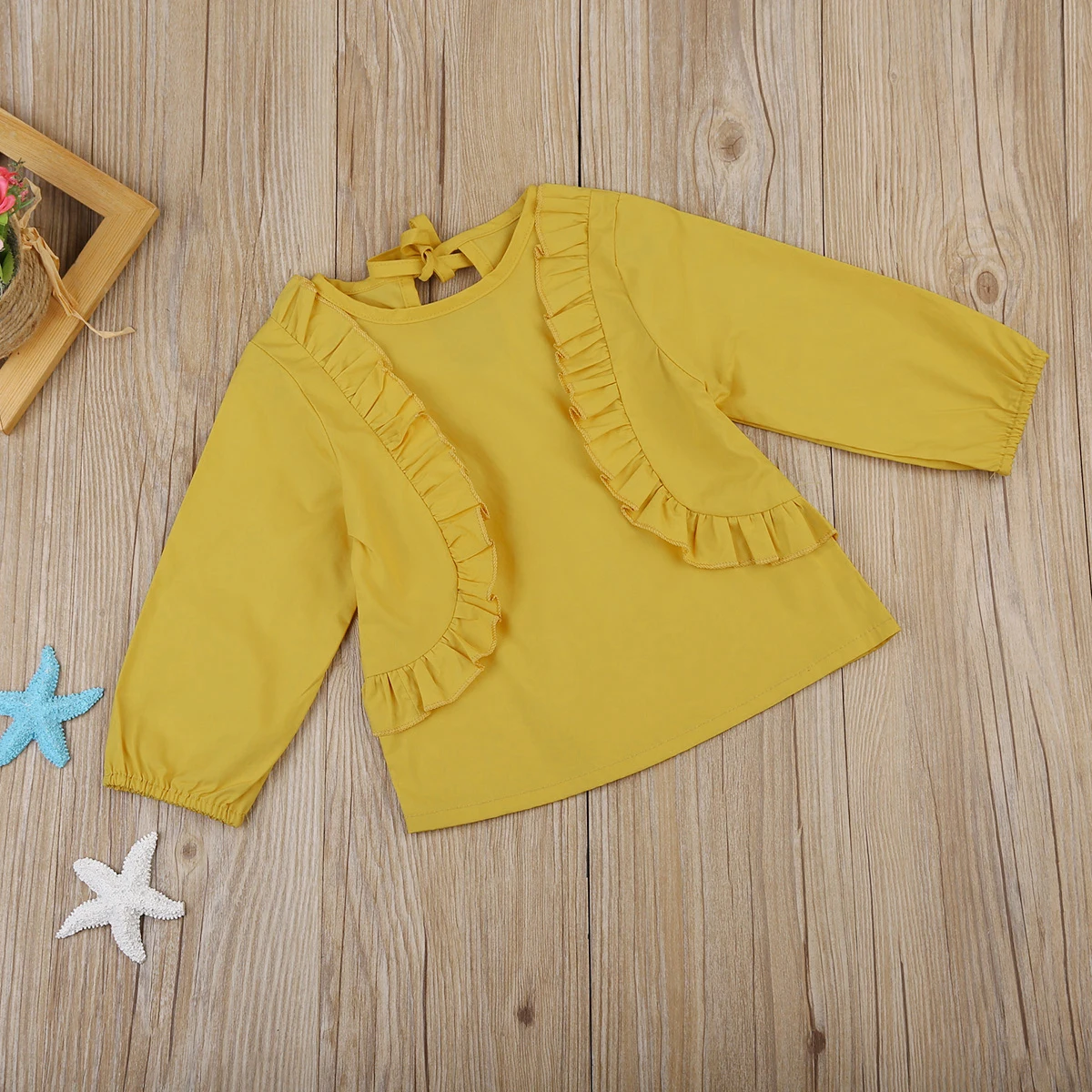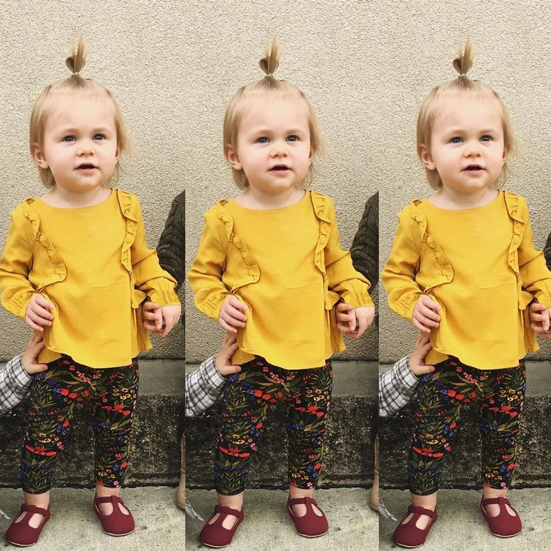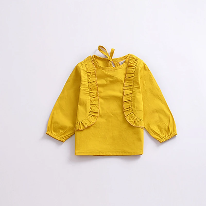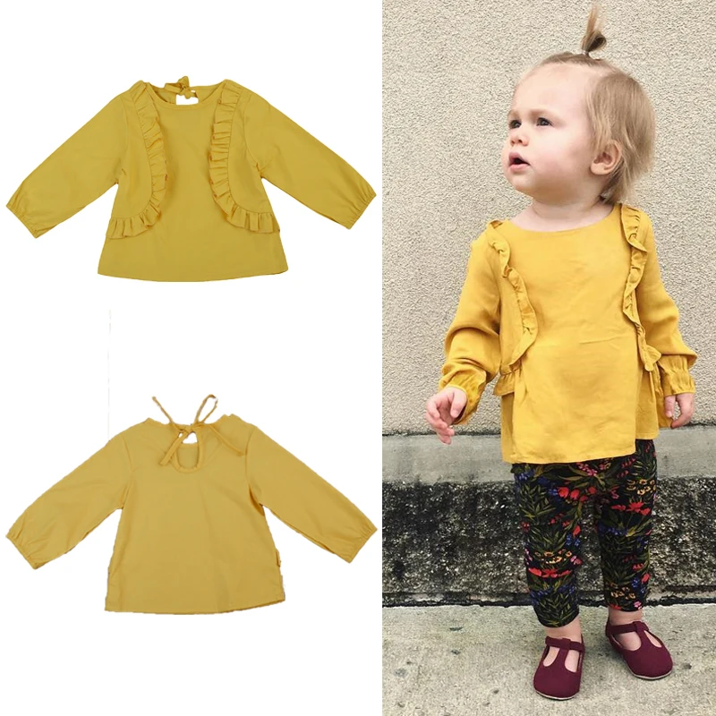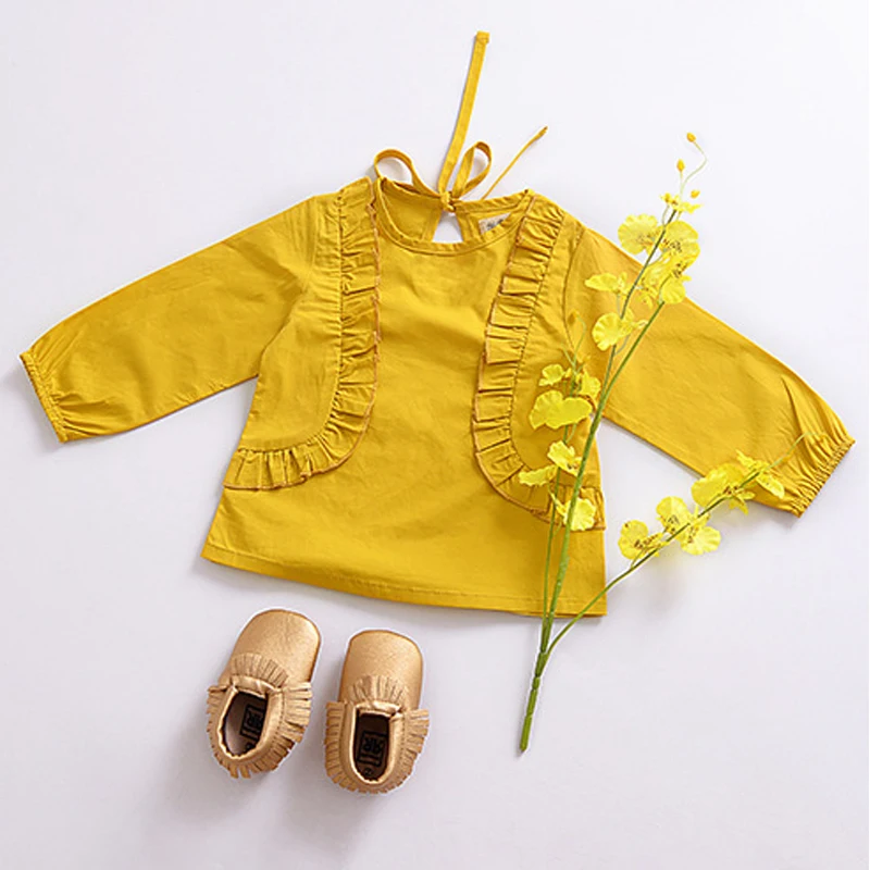 Baby Girls Ruffle Tops Blouse Kids Long Sleeve Tops Sweatsuit Costume Shirts Cotton Yellow Casual Autumn Blouses