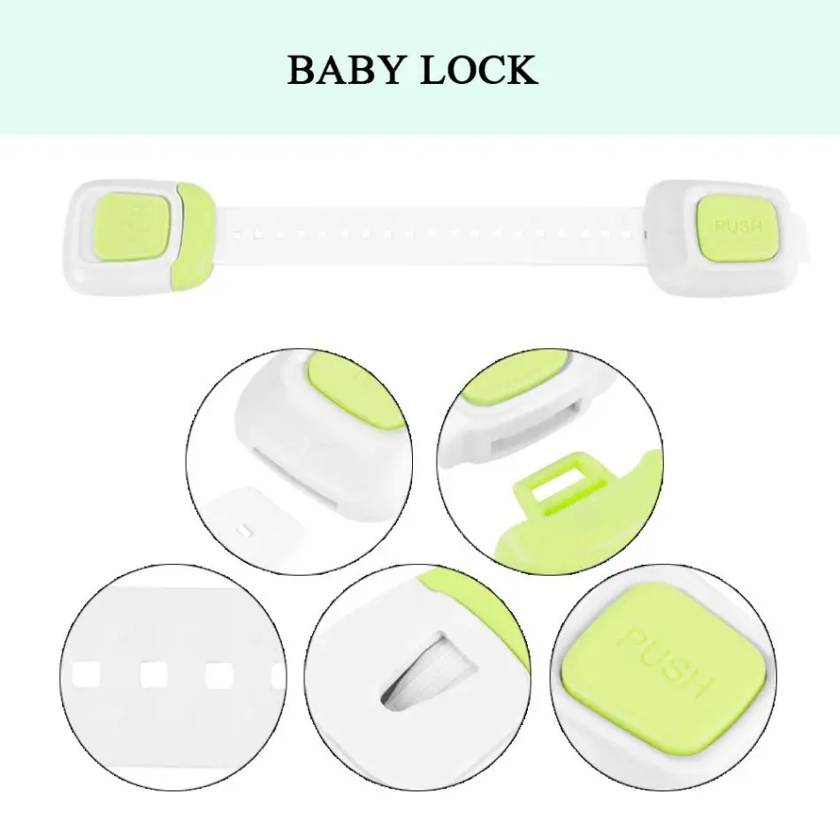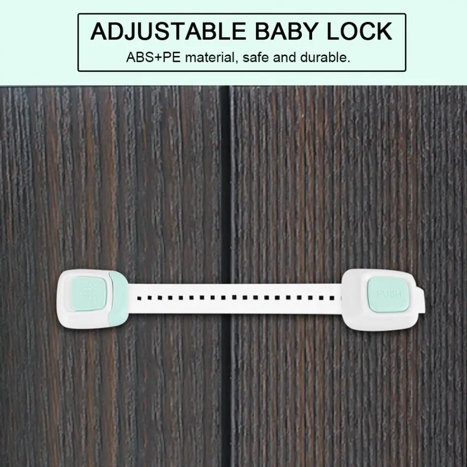 The baby safety long lock is durable and safe, the material of the lock is ABS+PE, which is safe to your baby. The lock can prevent you baby being nipped by the cabinet door. Buying the baby safety long lock makes your baby safe.