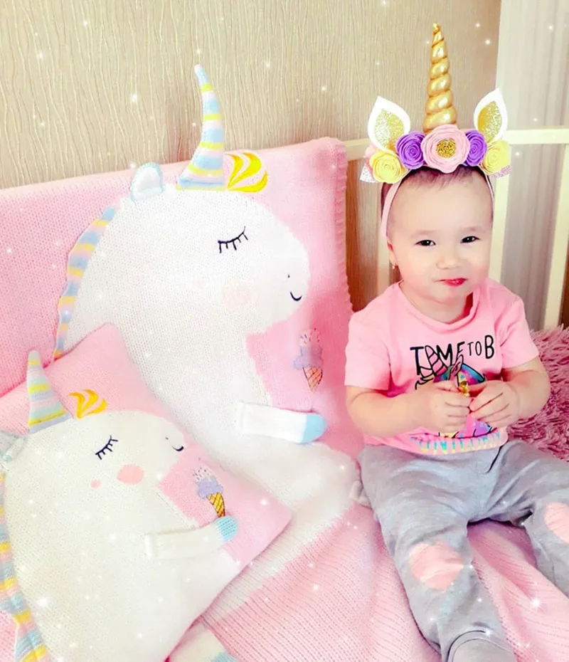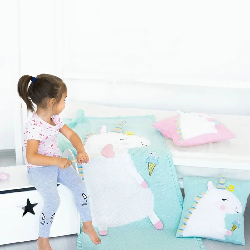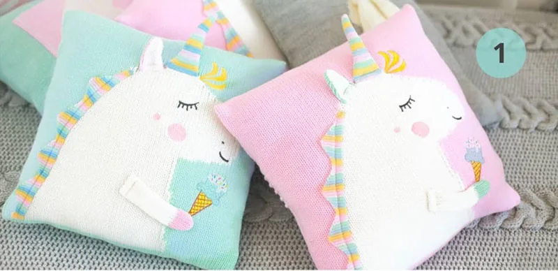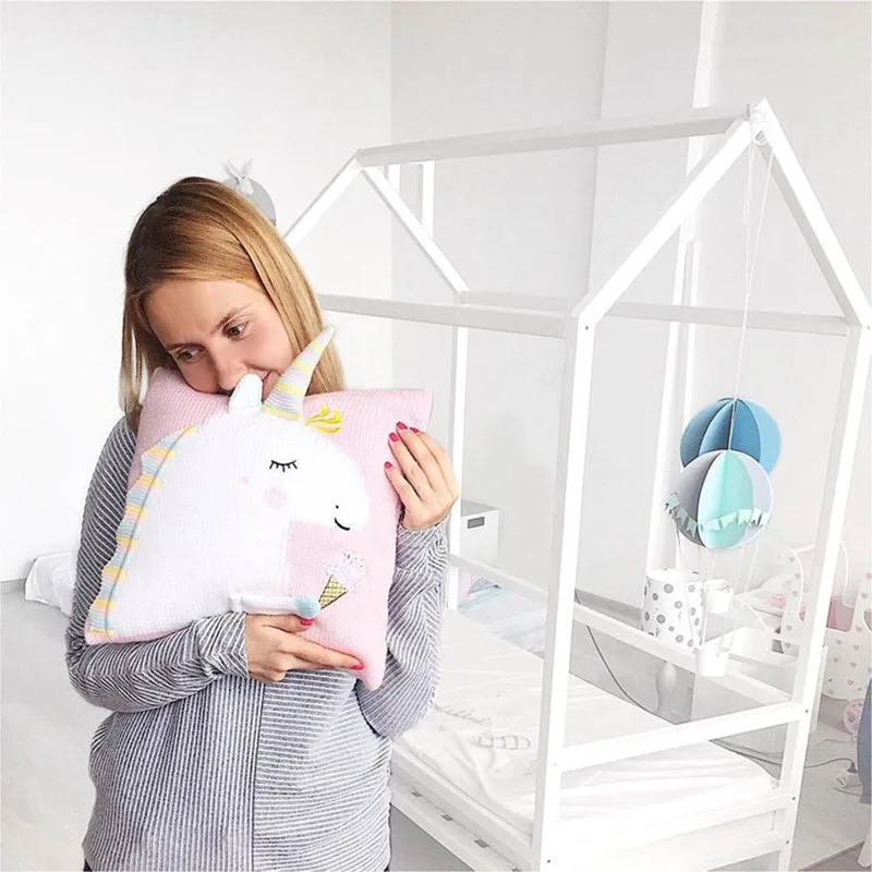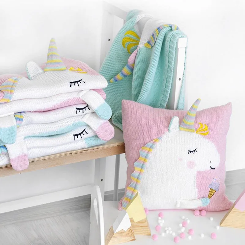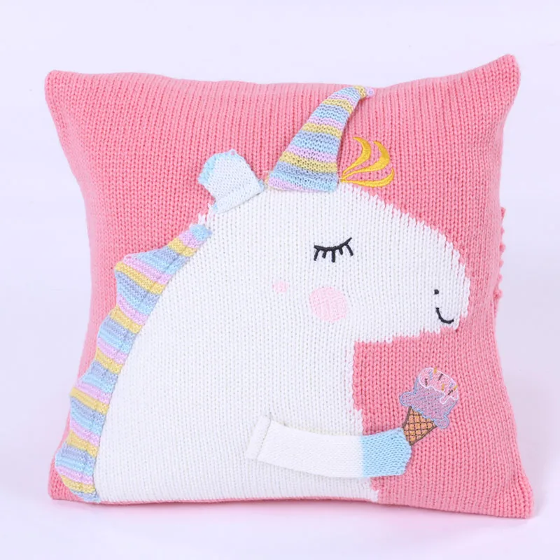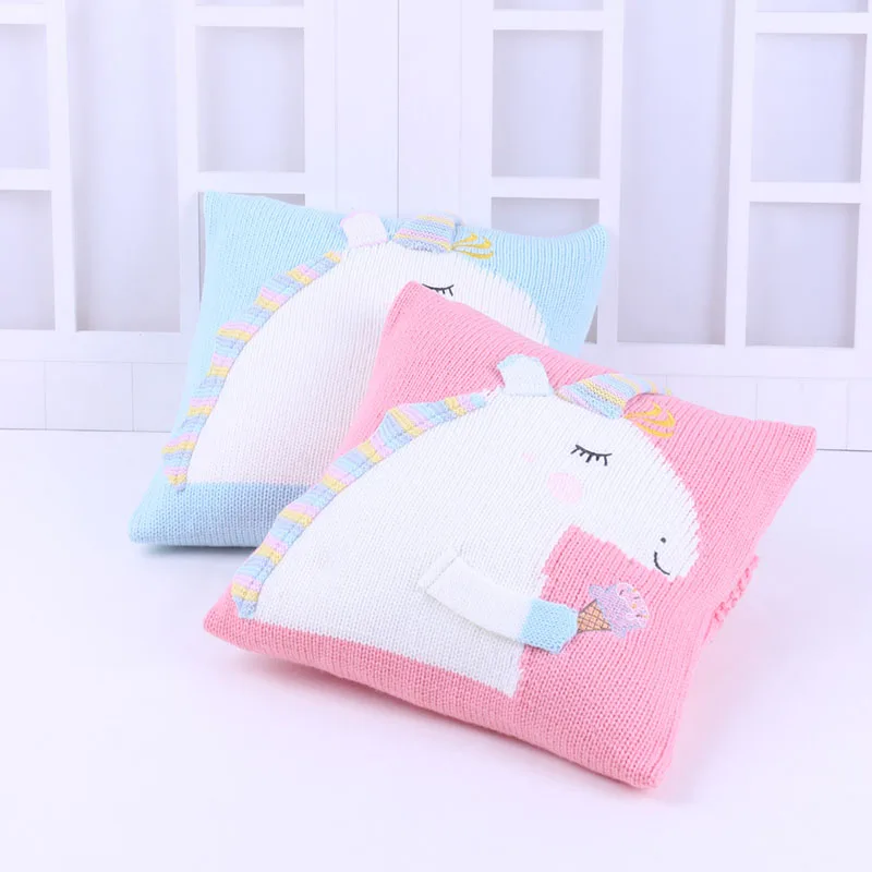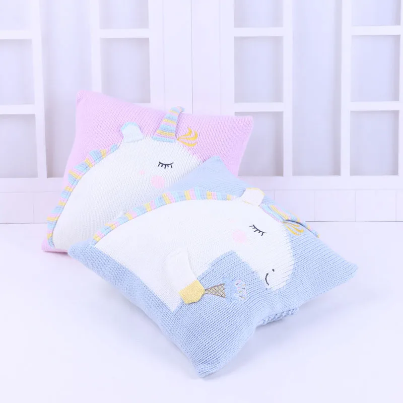 Baby Knit Cushion Pillow Cartoon Three-dimensional Unicorn Sofa Pillows Children Photography Prop Bedding Decorative Cushions