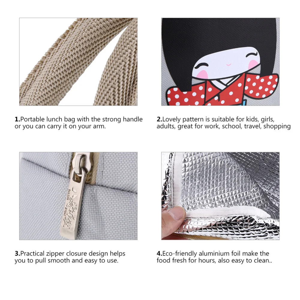 Our cute lunch bag can easily fit all your snacks, drinks, sandwiches, fruit or vegetable, so you can take it with to the office, pack a healthy snack or have a delightful picnic. The high-impact oxford cloth fabric outside and aluminum foil inside provide great insulating ability that keep your food warm longer. No more costly and unhealthy junk food for you or your family! Enjoy your best tasting meal whenever and wherever you want.