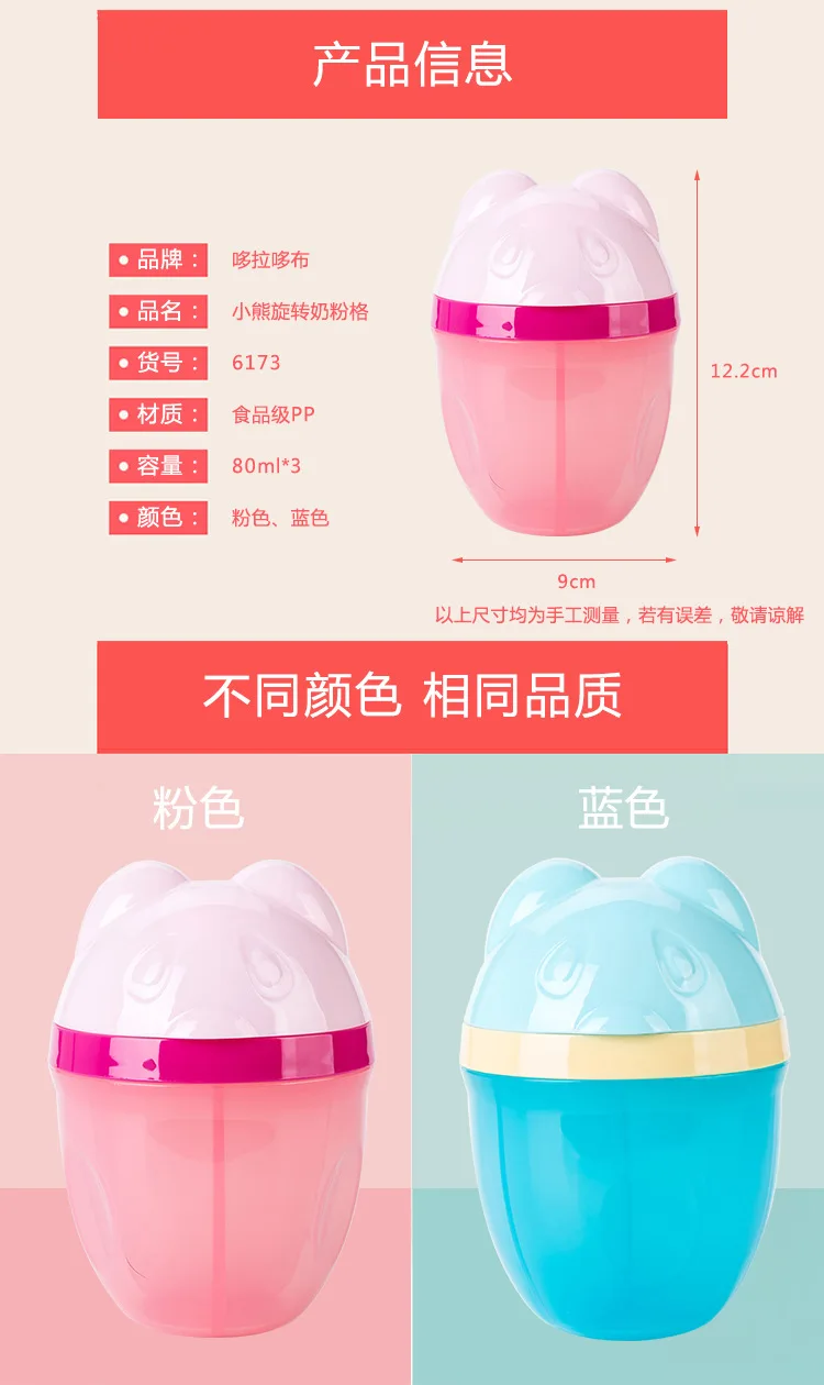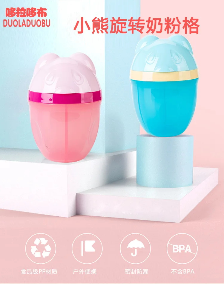 Baby Milk Powder Box Cute Cartoon Bear Portable Three-lattice Rotate Formula Dispenser Food Container Storage Infant Feeding Box