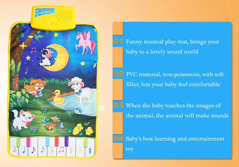 Baby Musical Play Mat Language Learning Platmats Carpet Piano Music Baby Educational Mat Electronic Children PlayMat For Kids