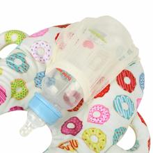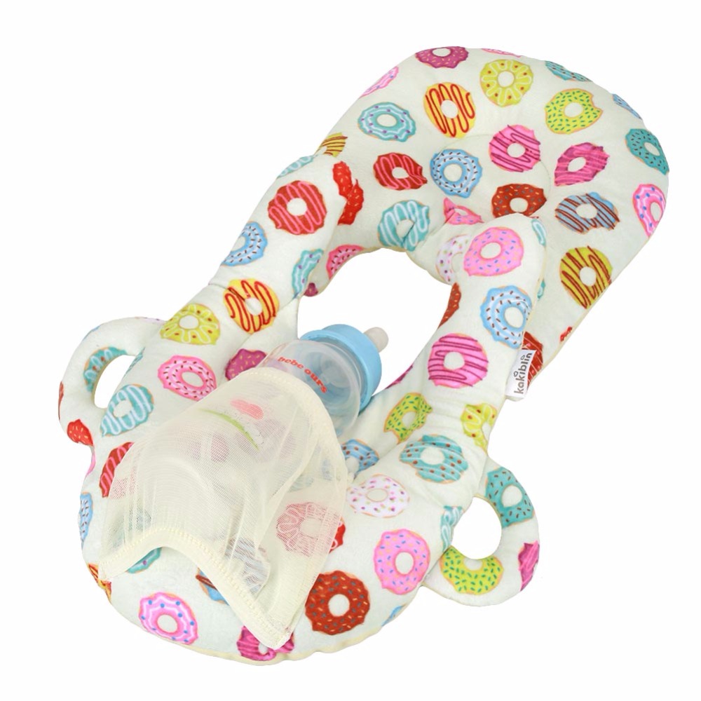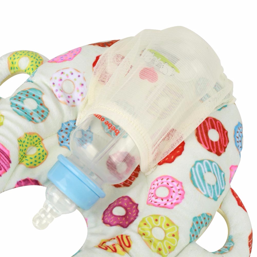 - This feeding pillow includes a transparent net bag which can store the milk bottle.