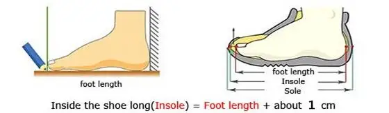 1. Usually, inside length = feet length(heel to toe) + (0.8~1)cm;