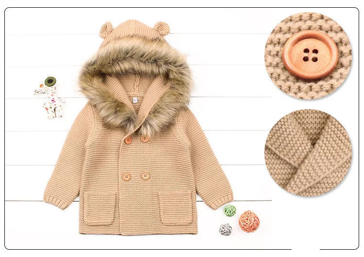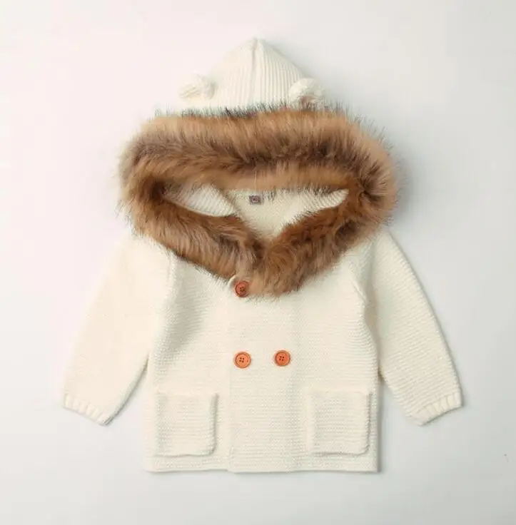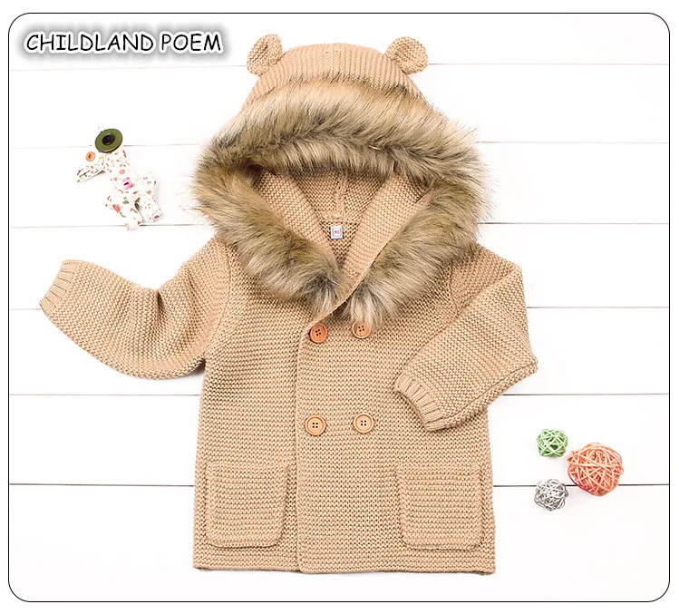 Baby Sweater For Boys Cardigan Autumn Hooded Faux Collar Knitteed Boys Girls Jacket and Coat Toddler Baby Girl Sweater Cardigan