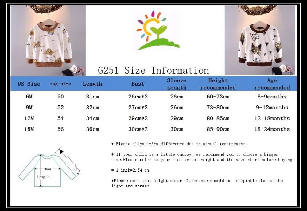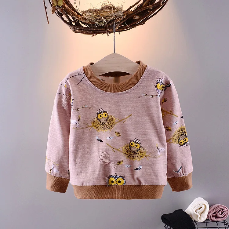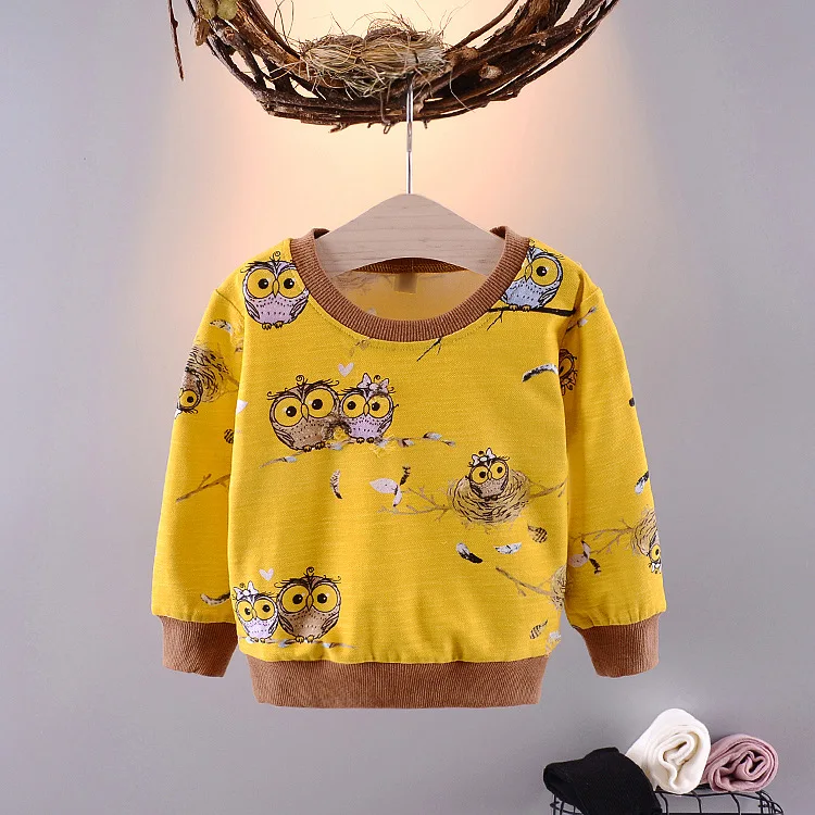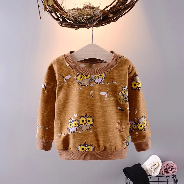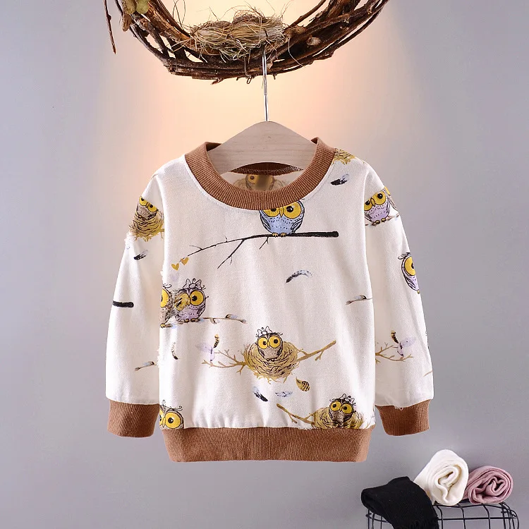 Baby Toddler Kids Boys Girls Autumn Spring T-shirts Cotton Character Print Long Sleeve Tops 60-90cm Kids G251