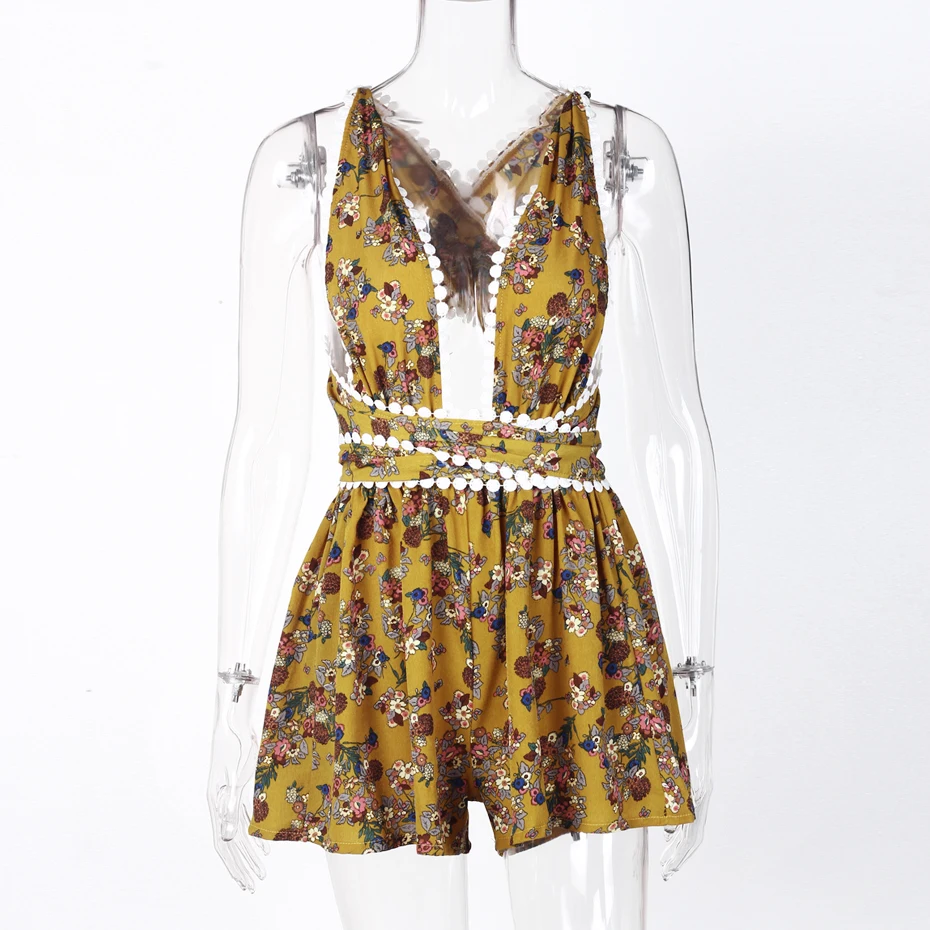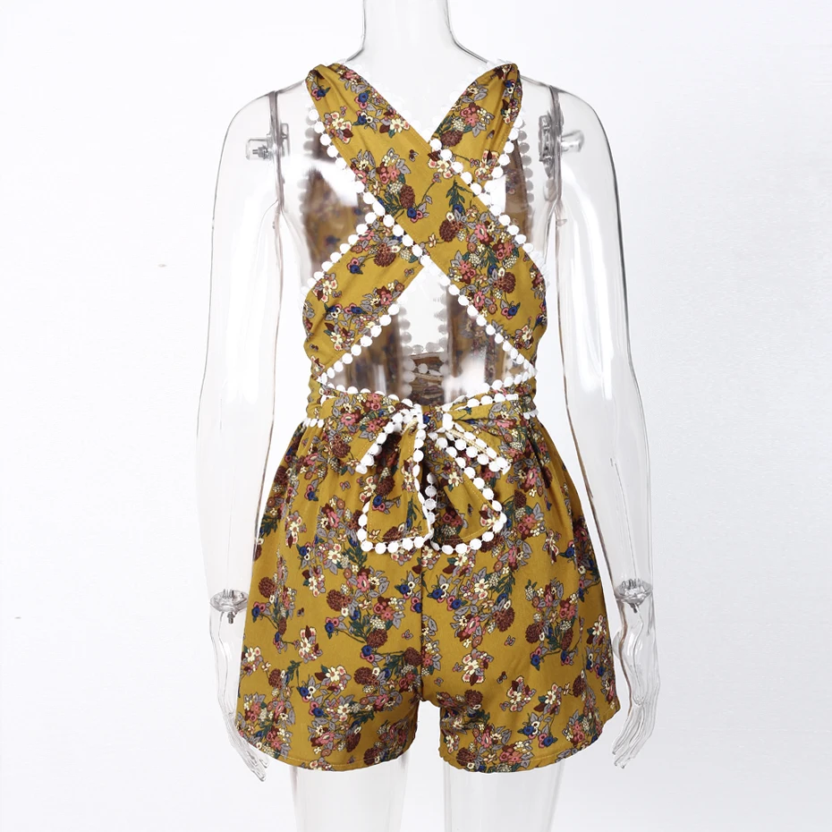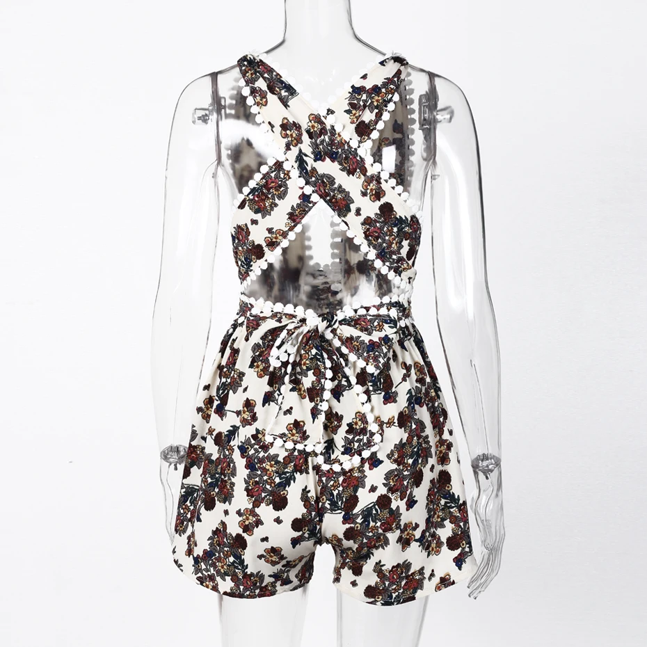 Backless Rompers Womens Jumpsuit Summer 2018 Fashion Deep V Neck Sexy Jumpsuits Shorts Women Sleeveless Floral Print Playsuit