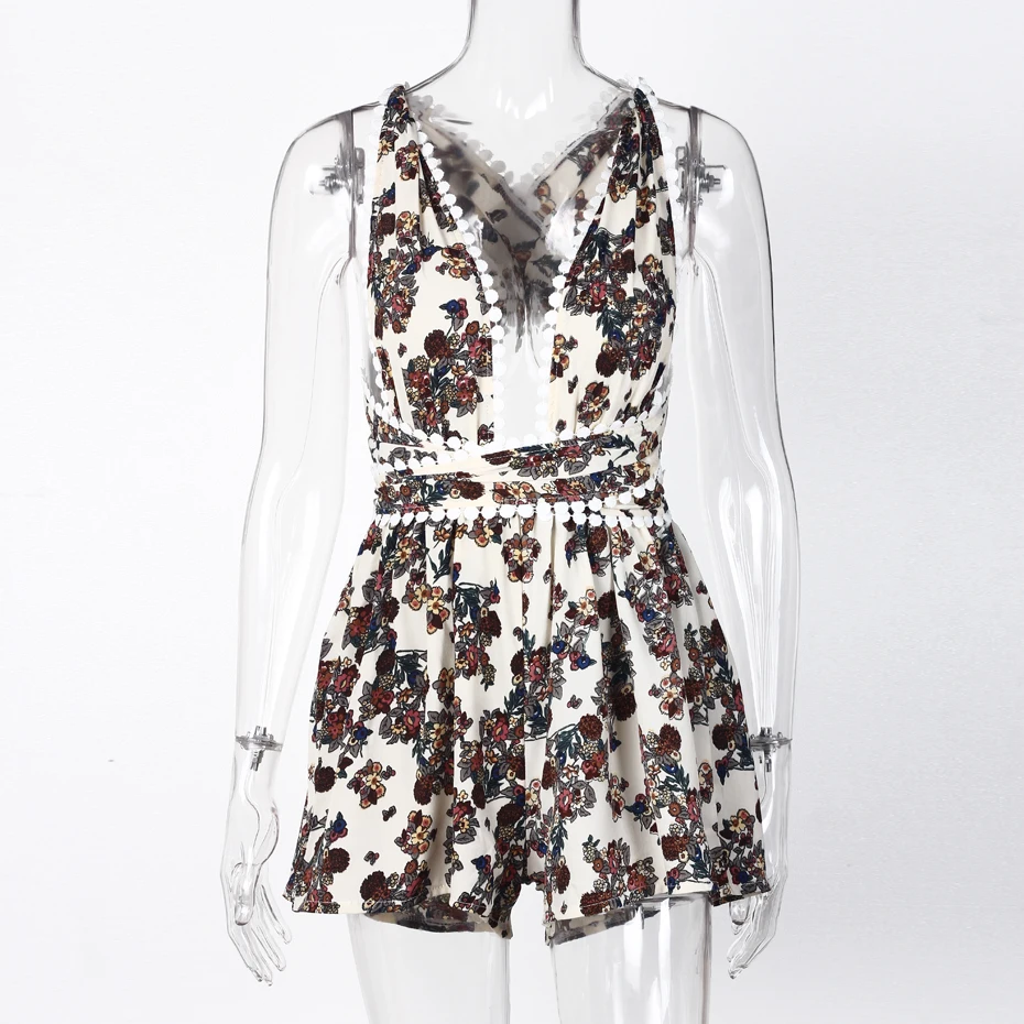 Backless Rompers Womens Jumpsuit Summer 2018 Fashion Deep V Neck Sexy Jumpsuits Shorts Women Sleeveless Floral Print Playsuit