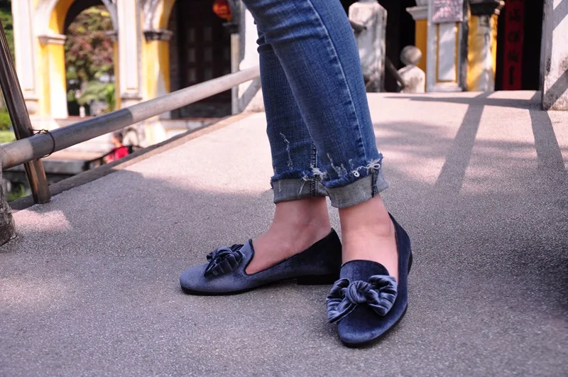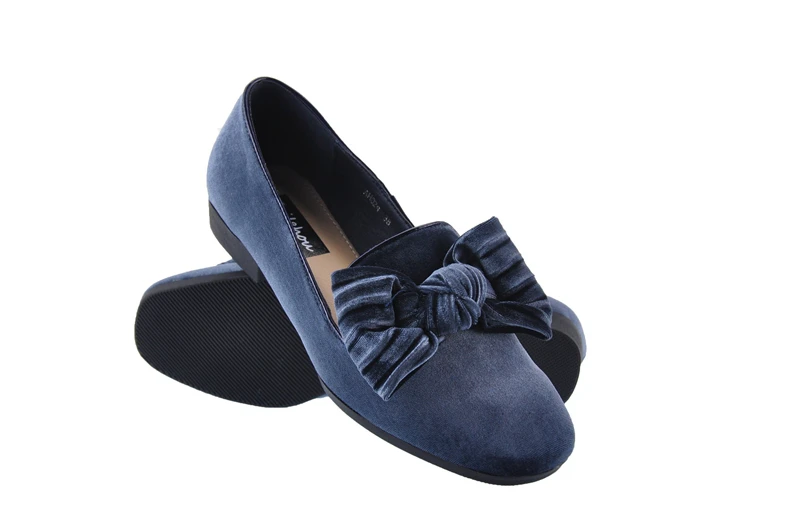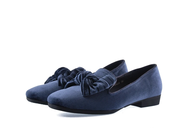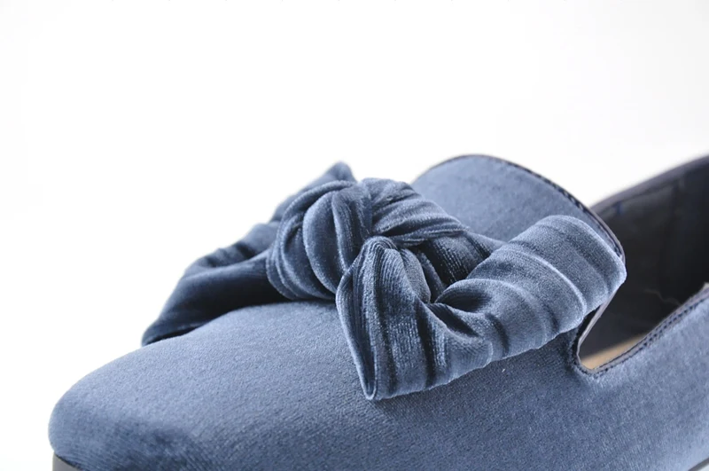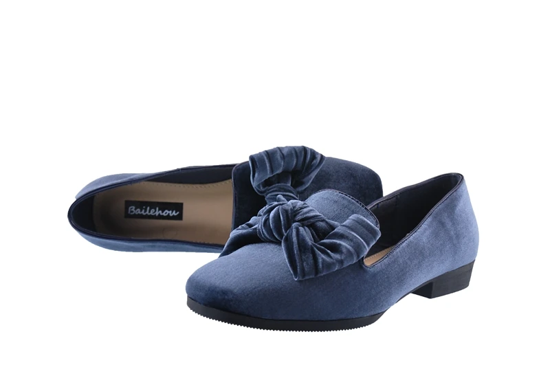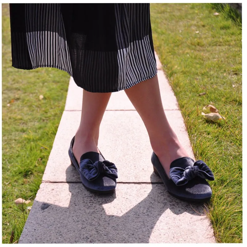 Bailehou New Arrivals Women Flats Shoes Square Toe Velvet Shoes Casual Slip On Loafers Butterfly Knot Ballet Shoe Flock Platform