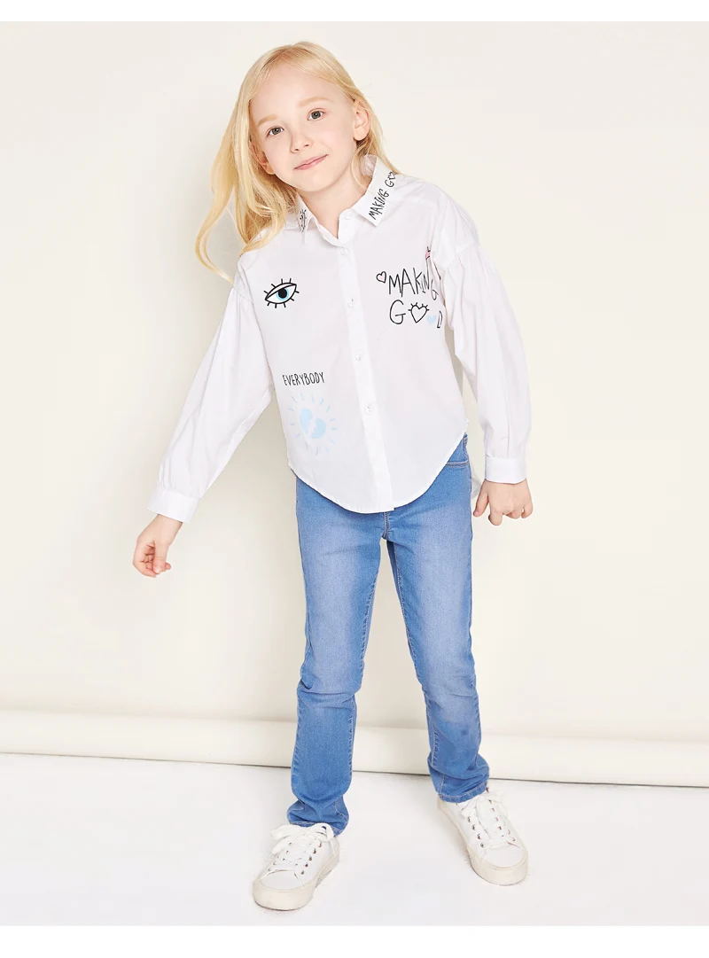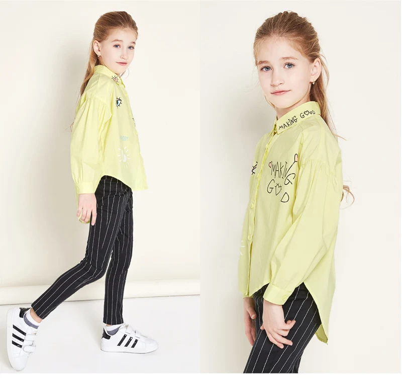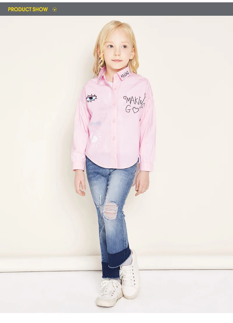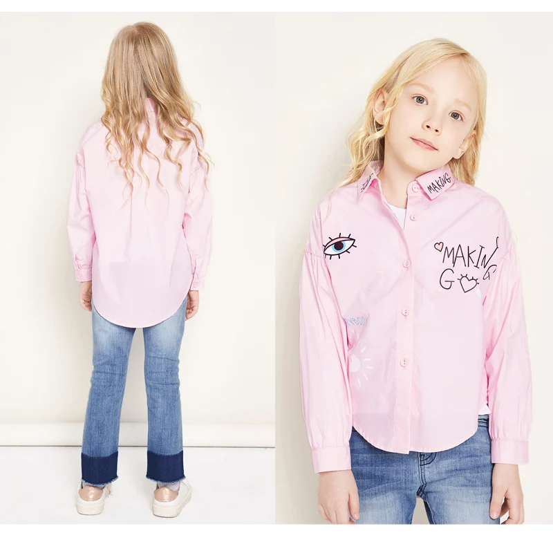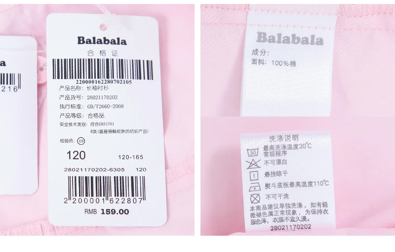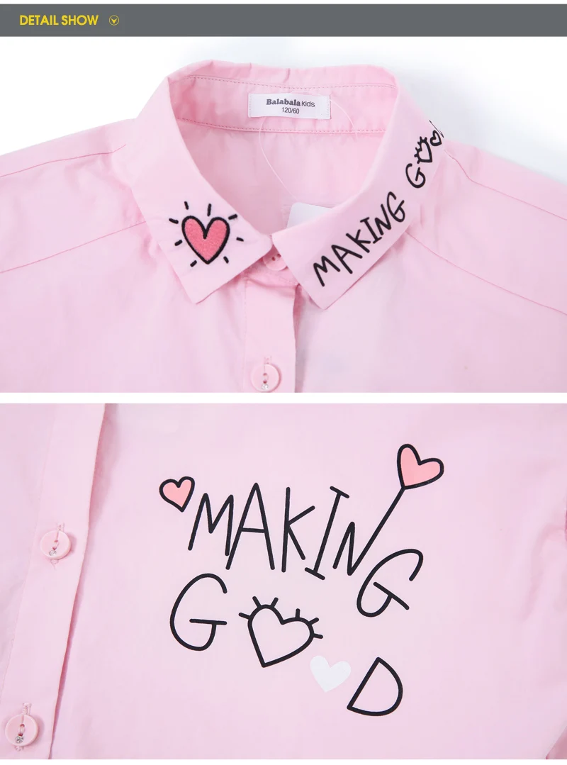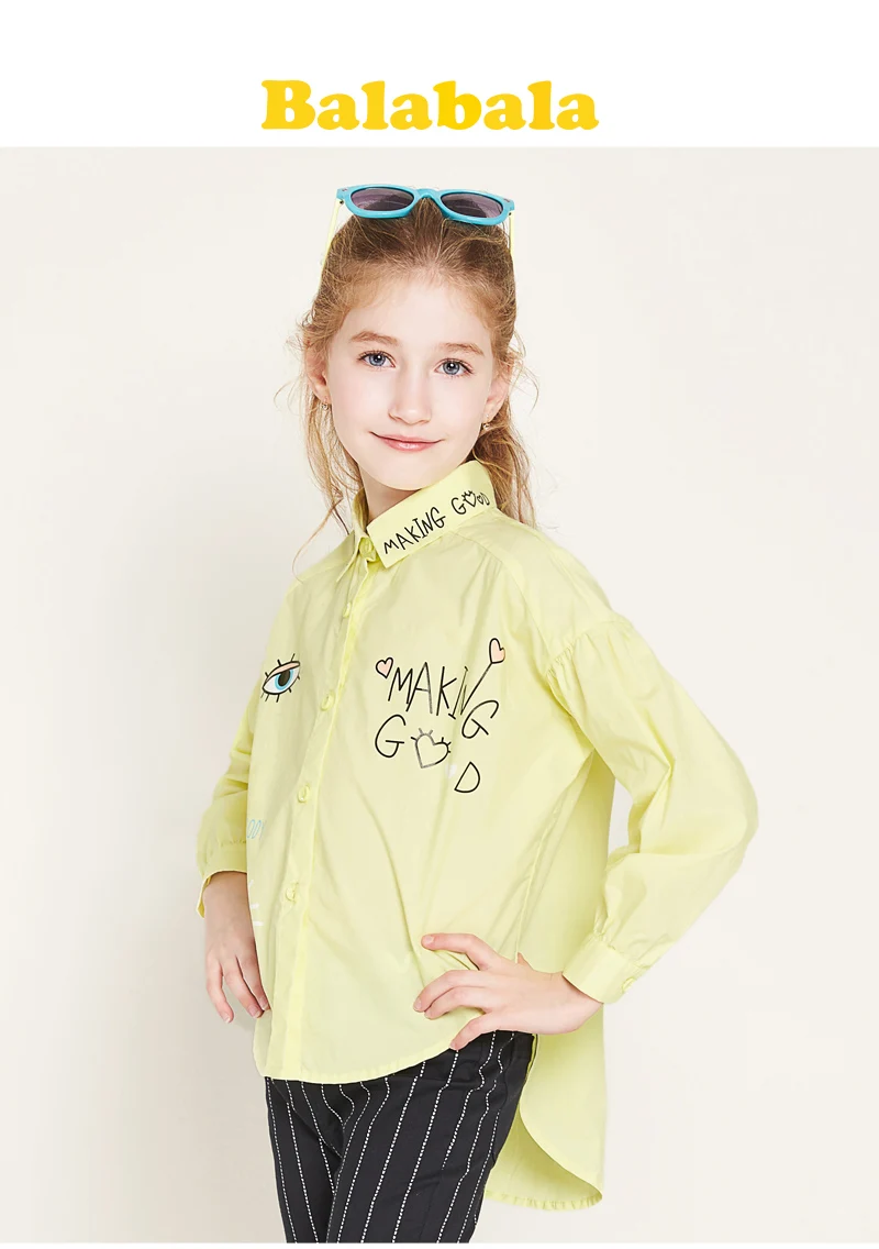 balabala Children Girls Long-sleeved Shirt Cotton Spring Autumn New girls blouses Breathable Comfortable Shirts For Kids Girls