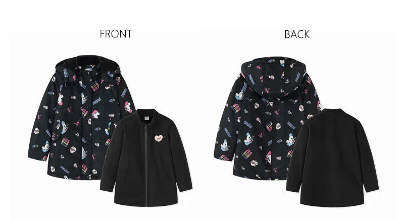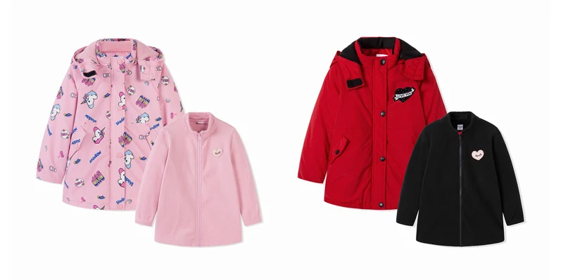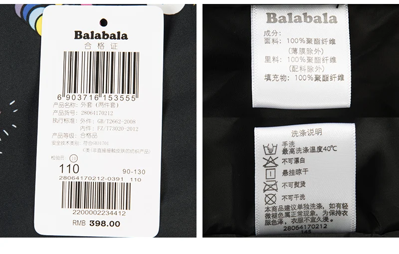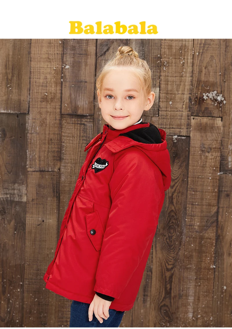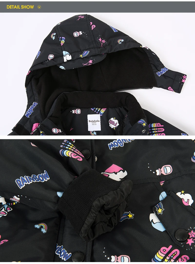 balabala Girls Children Cotton Jacket BLOUSONS Autumn Winter Plus Velvet Thick Warm Fashion Detachable Smooth Outwear For Girl