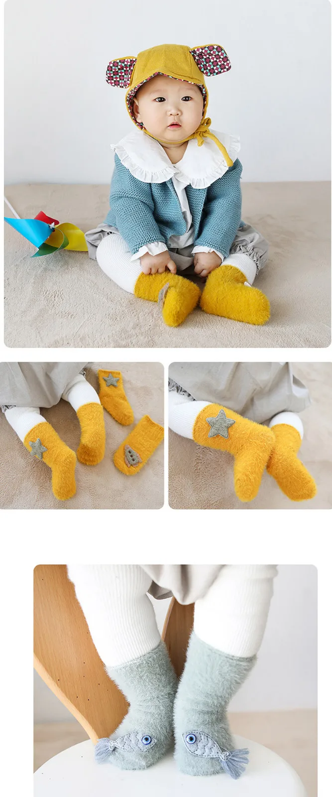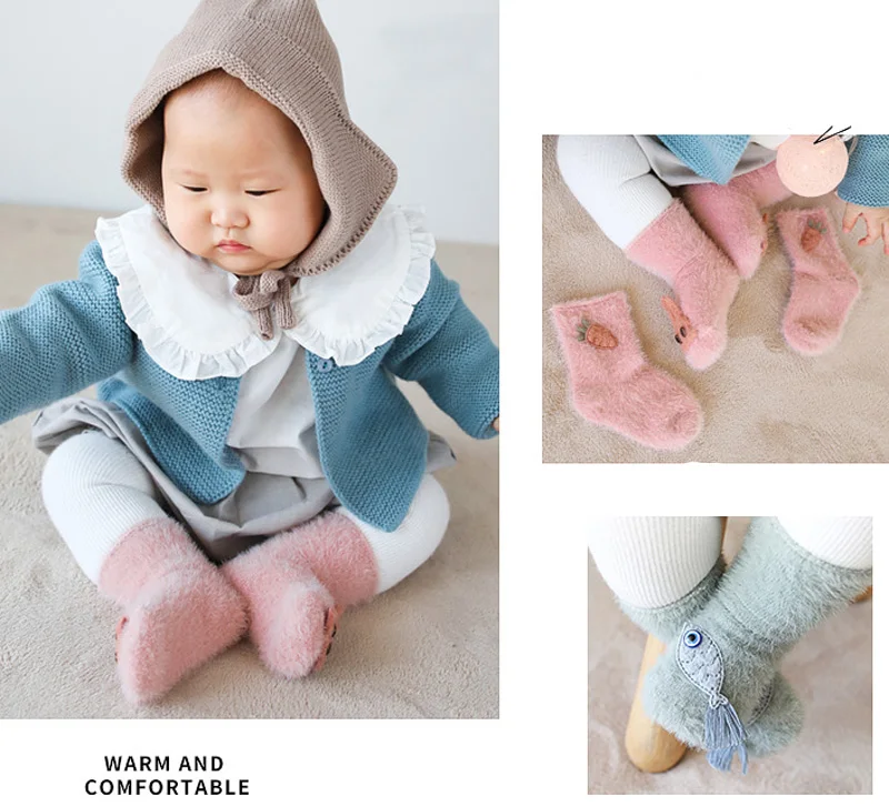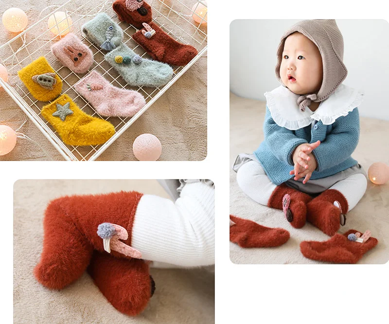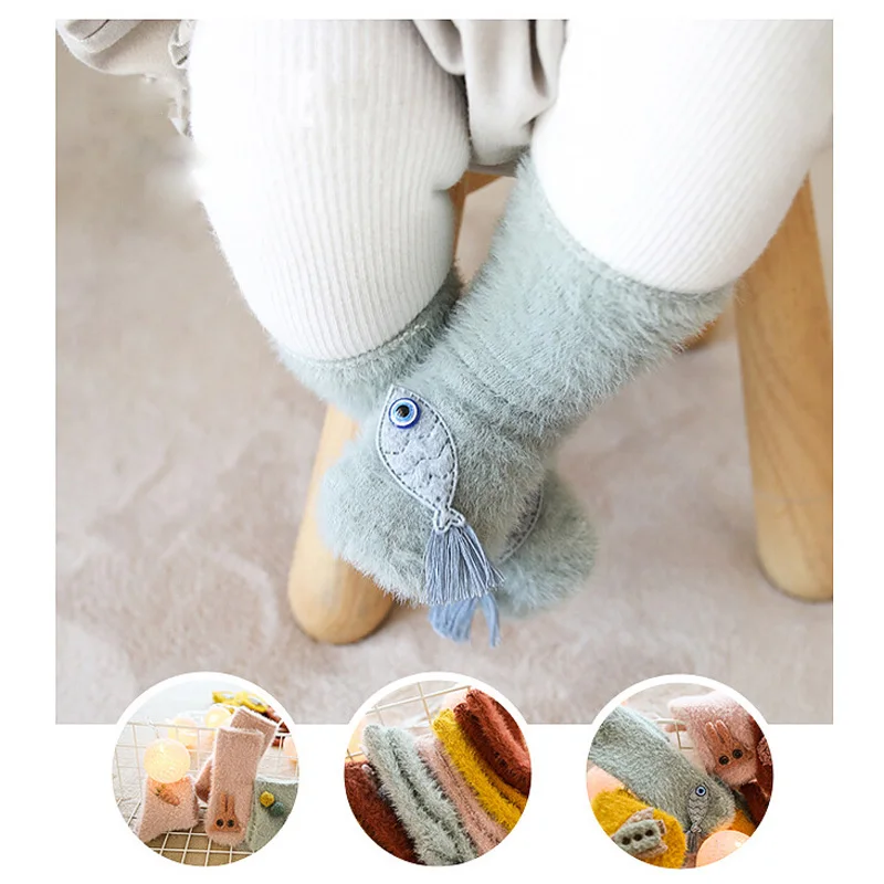 BalleenShiny 3D Cartoon Toddler Warm Socks Baby Boys Girls Thicken Terry Cute Mid Tube Socks For Gift New Arrival Autumn Winter