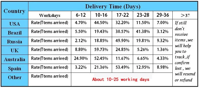 3) Please contact us before leaving neutral (3 stars) or negative (1-2 stars) feedback.We will try our best to solve the problem and leave you a happy shopping mood here. Thank you!